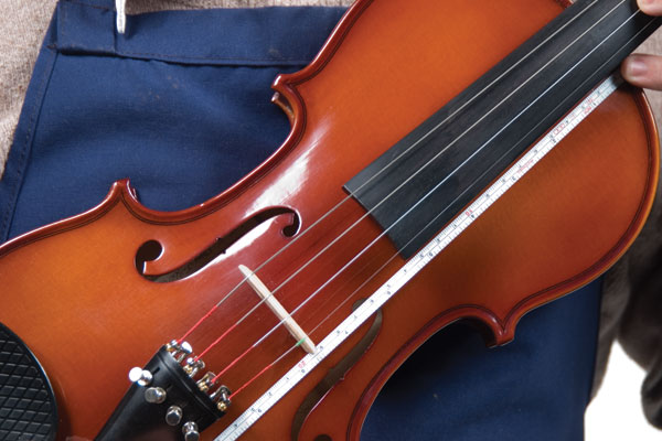 The measurement from the outer edge of the bridge feet to the respective inner edge of the f-holes should be equidistant on both sides. (This distance may vary depending on the design of the instrument )