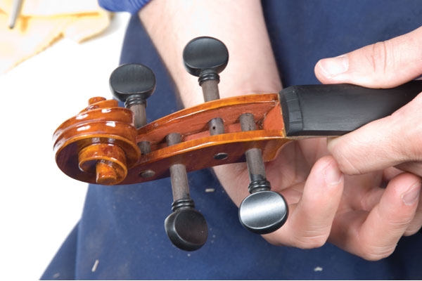 Professionally installed pegs (ebony, rosewood or boxwood) should move evenly, easily, and stay in tune.