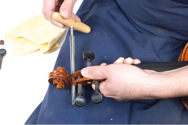 To achieve a perfect fit, the bulk of the wood removed must be taken from the peg, not the peg box. A peg shaper is used to remove this wood.