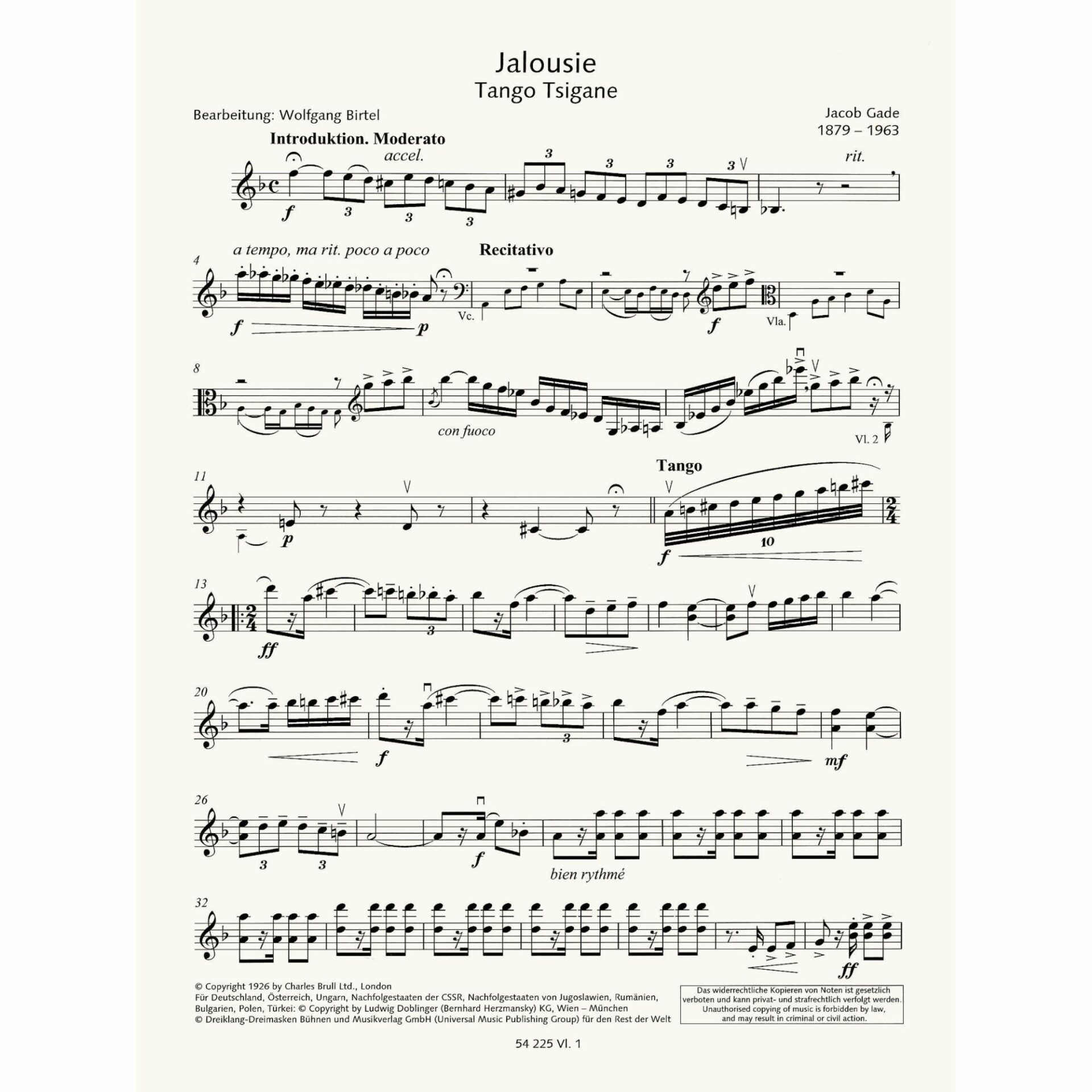 • Jalousie (Tango Tsigane) – Jacob Gade