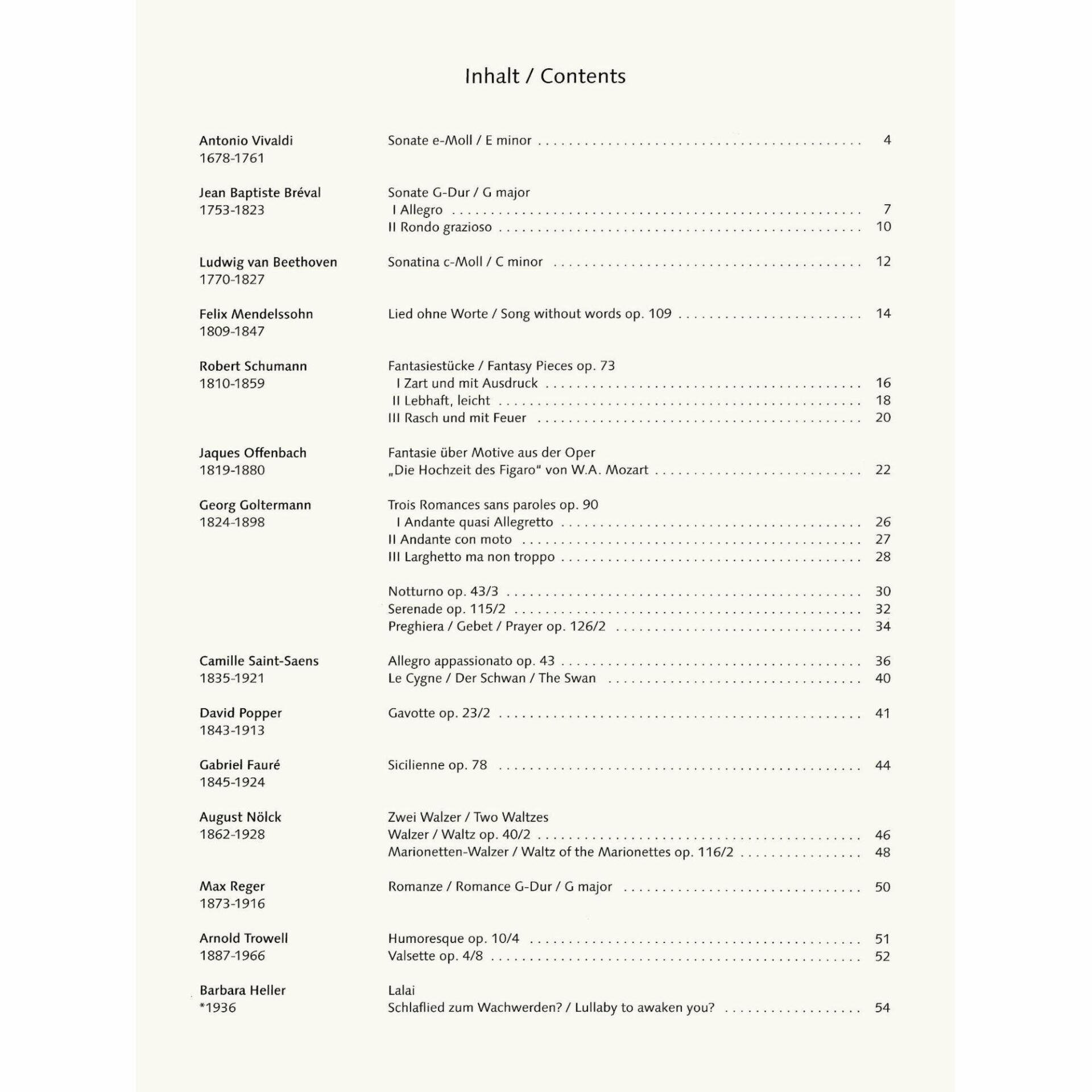 Appassionato: 25 Original Concert Pieces for Cello and Piano. Includes works of intermediate difficulty by Schumann, Offenbach, Goltermann, Reger, Trowell, and others (see photographs for contents). Compiled and edited by Rainer Mohrs and Elmar Preusser. Published as part of Schott’s “Cellissimo” series.