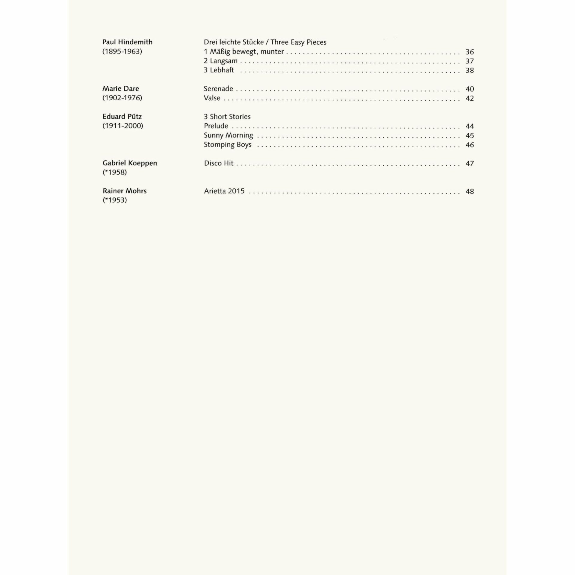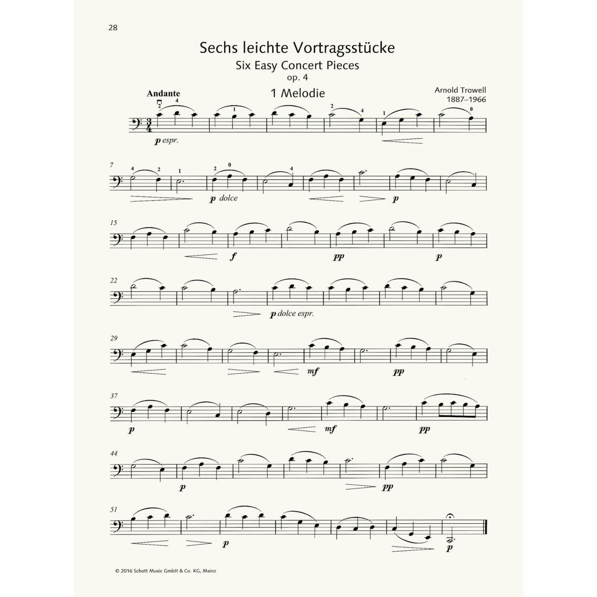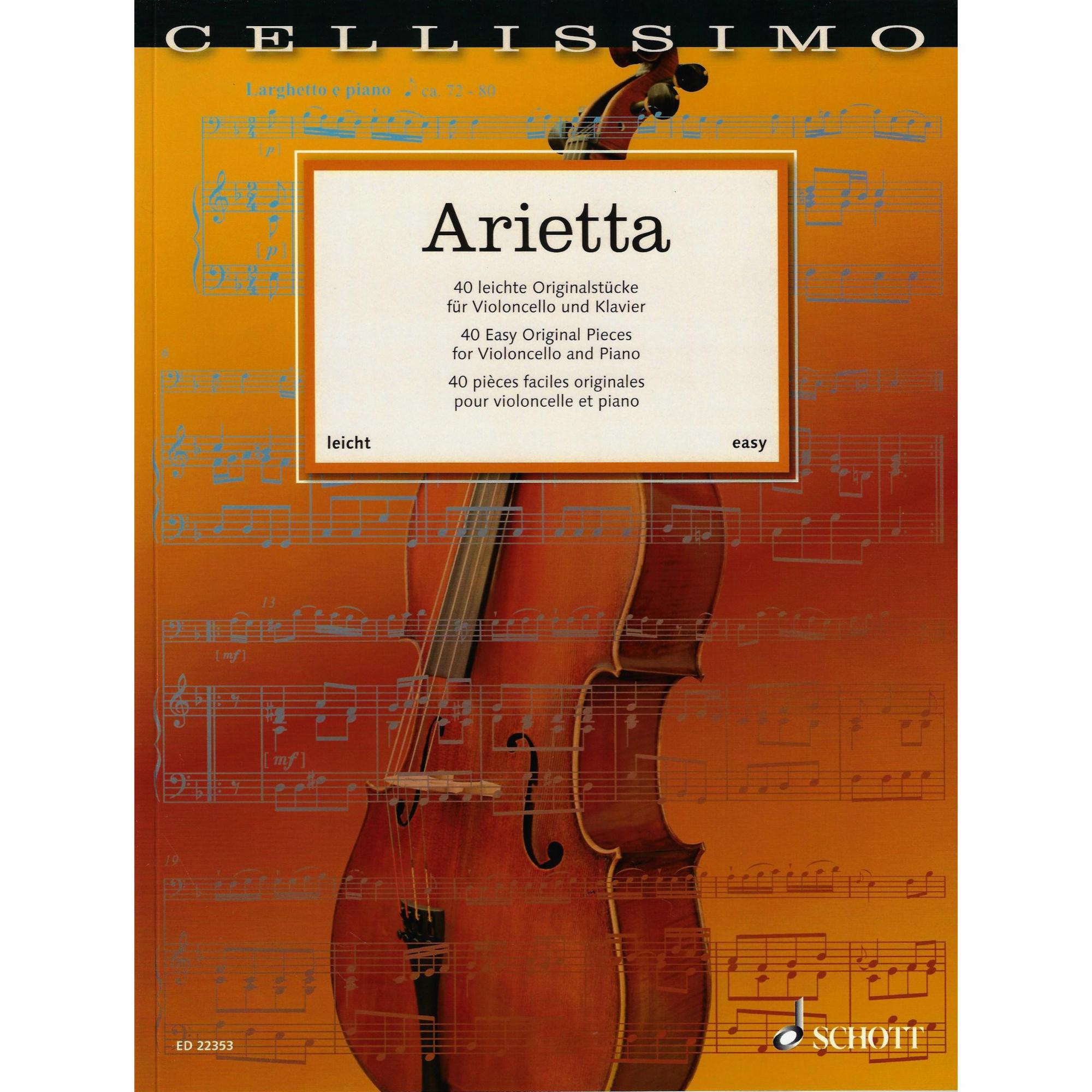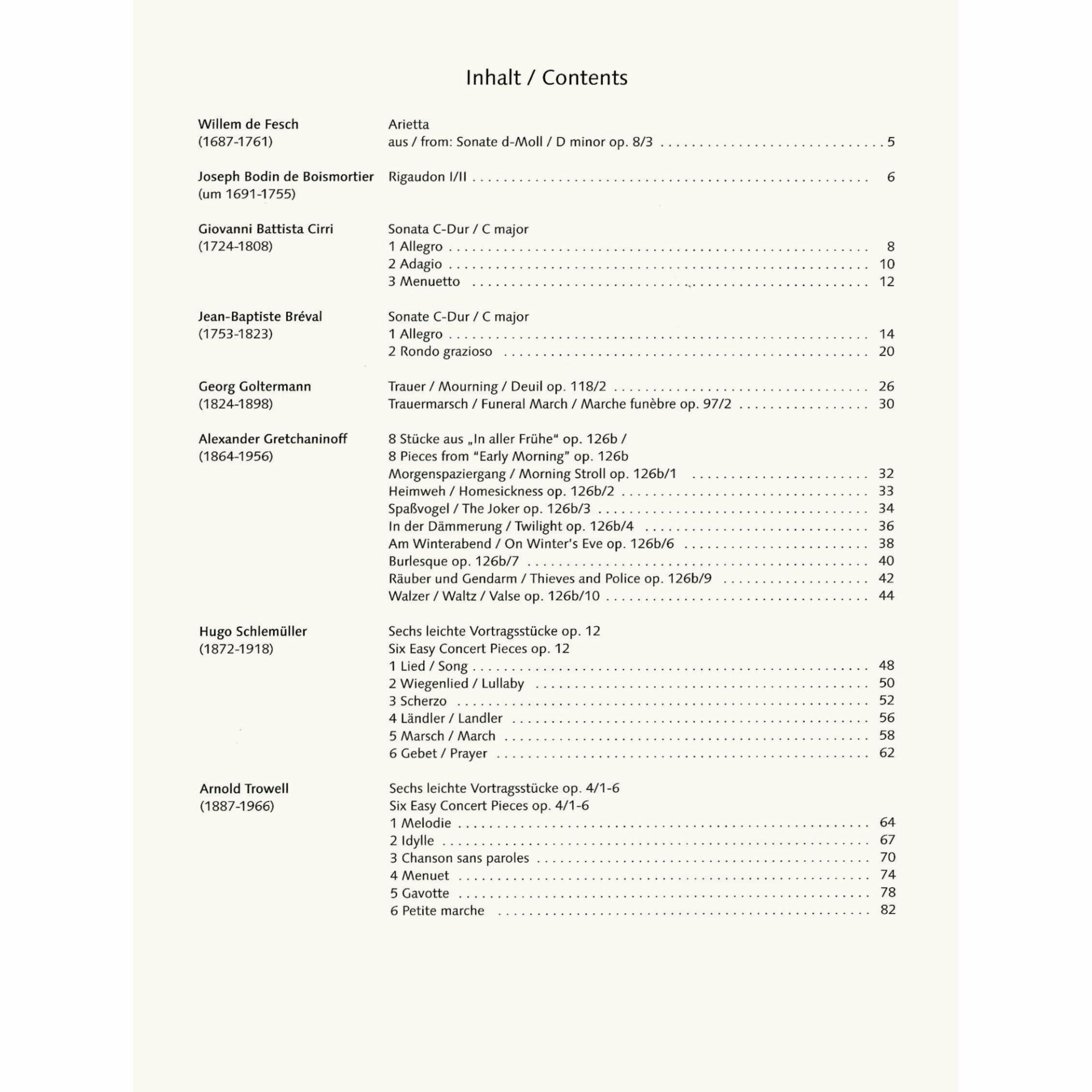Forty easy pieces by Breval, Goltermann, Gretchaninoff, Schlemuller, Trowel, and others for cello and piano. See photographs for contents. Compiled and edited by Rainer Mohrs and Elmar Preusser. Published by Schott.