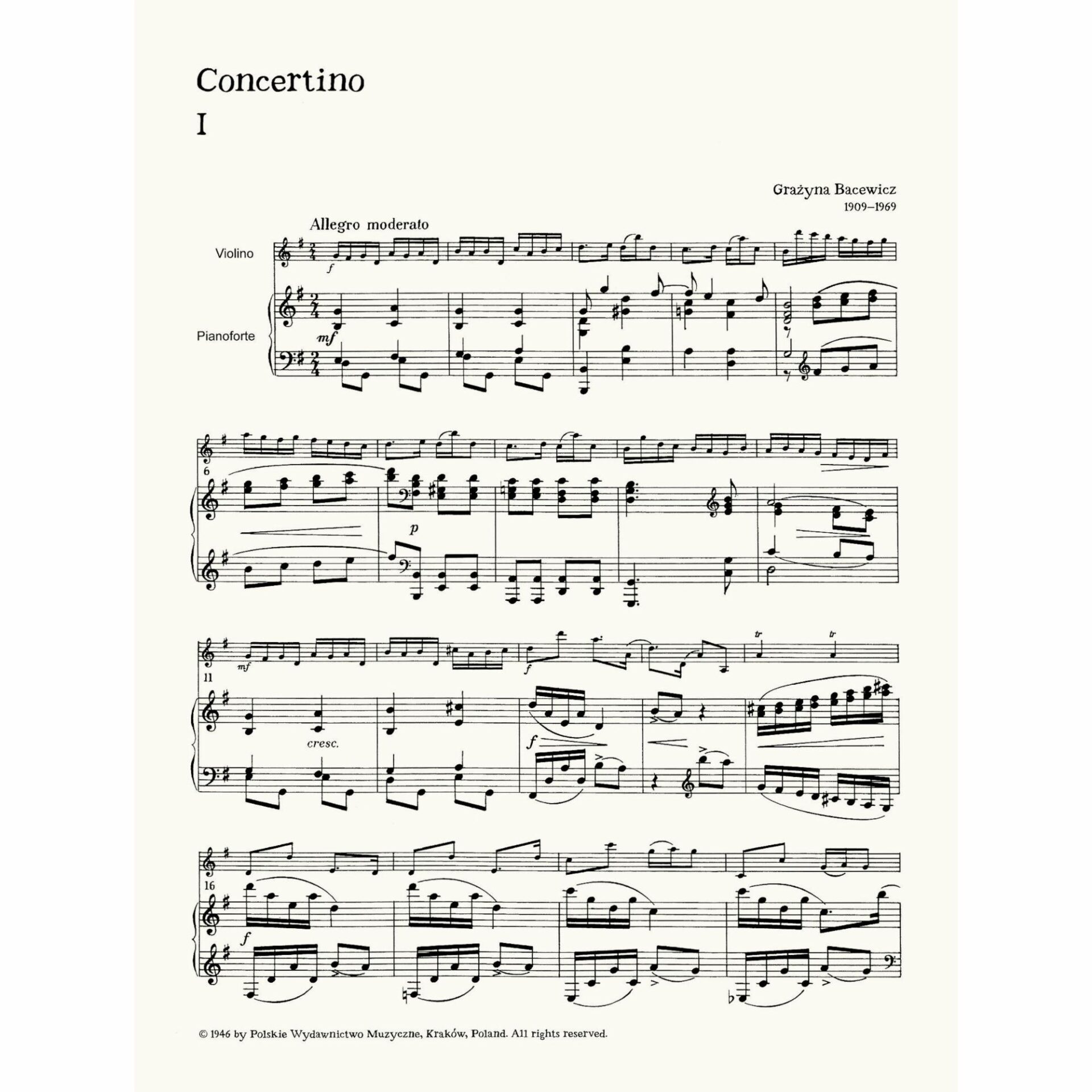 Bacewicz — Concertino for Violin and Piano