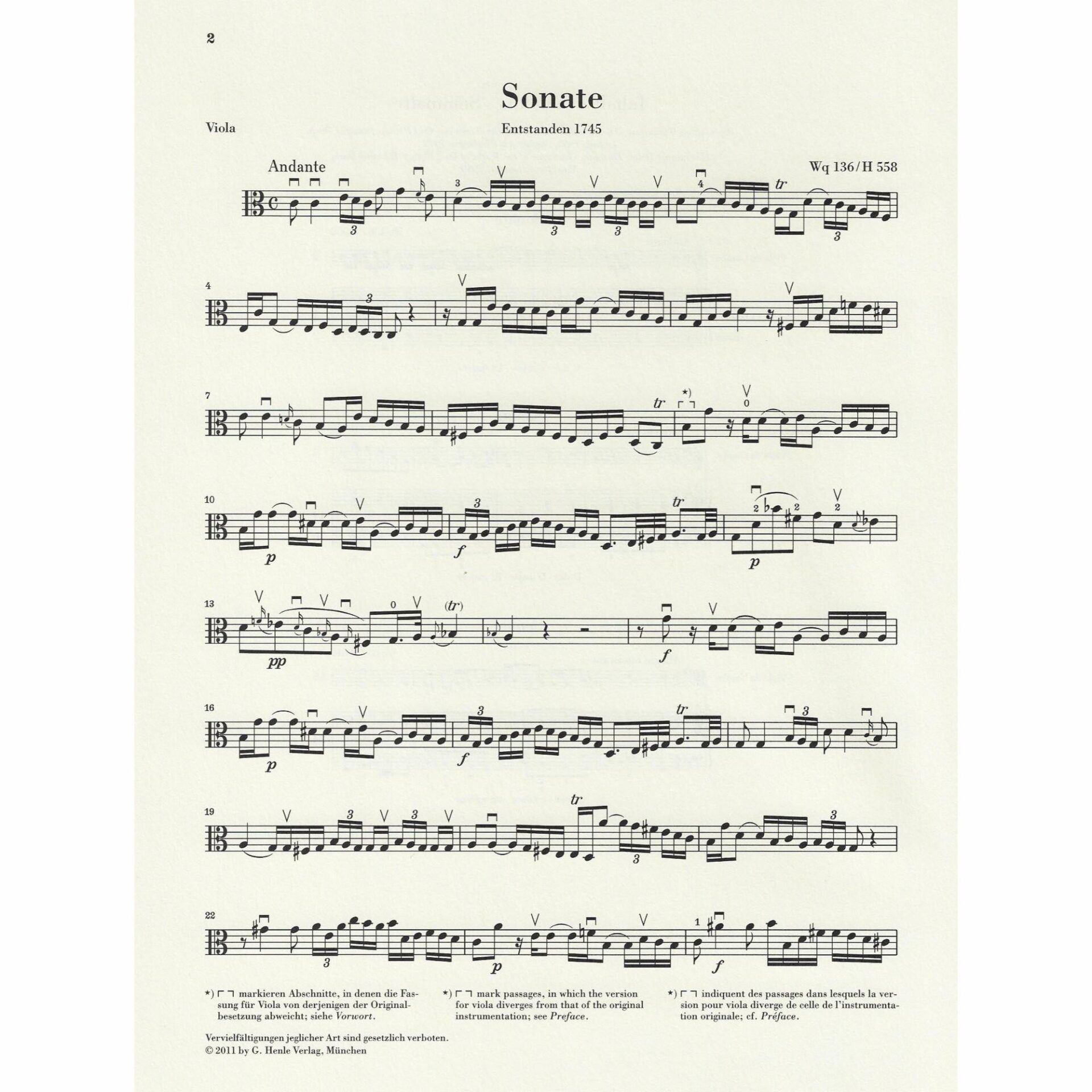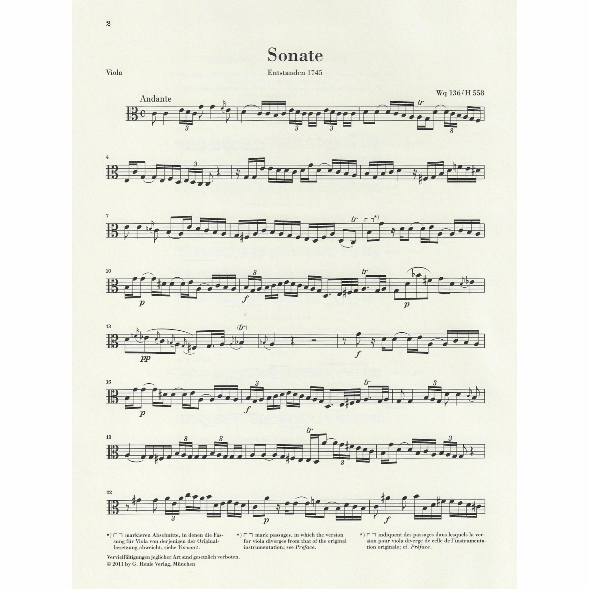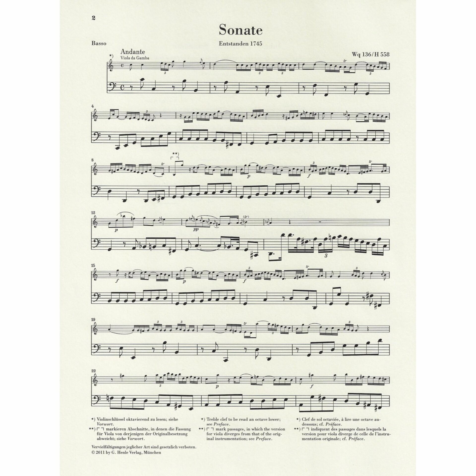 • Sonata in C Major, Wq 136/H 558