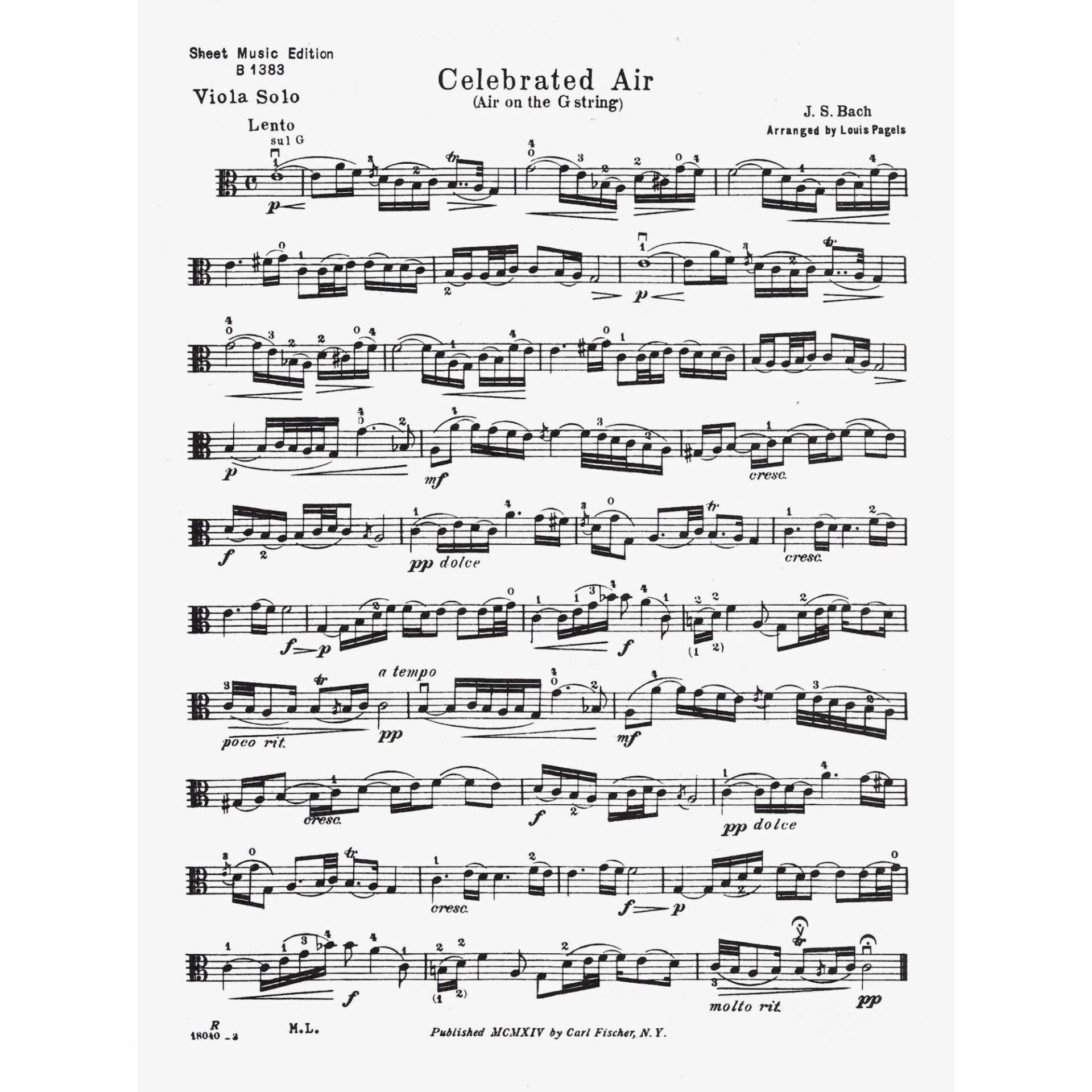 Bach — Celebrated Air for Viola and Piano