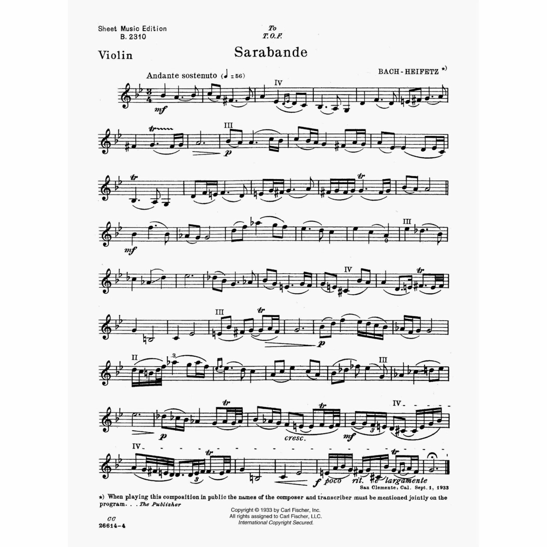 Arranger: Jascha Heifetz