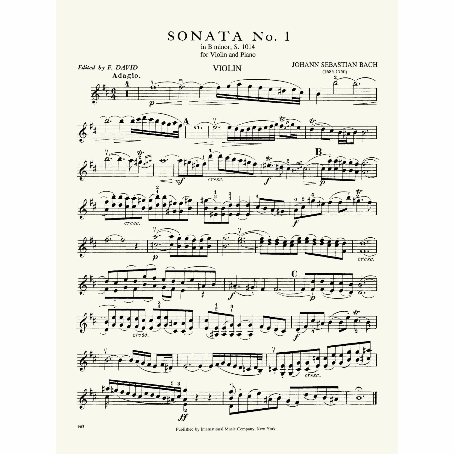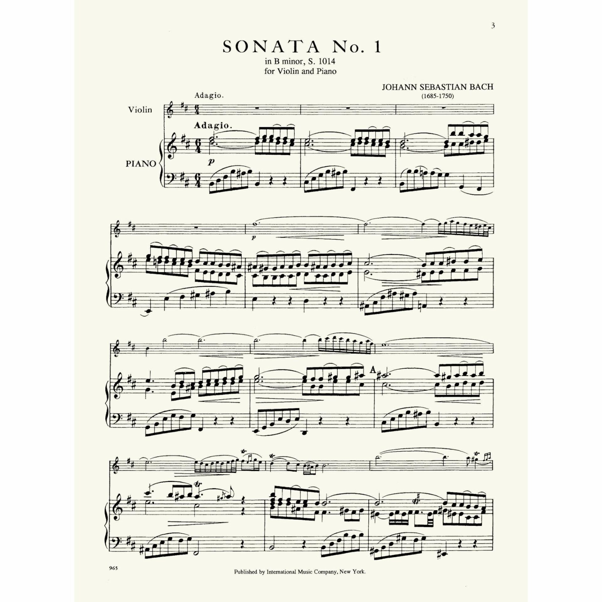 • Violin Sonata No. 1 in B Minor, S. 1014