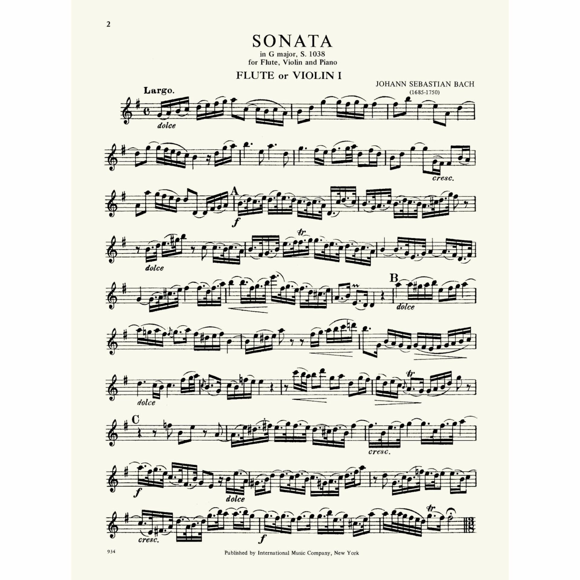 Title: Sonata in G major, S. 1038