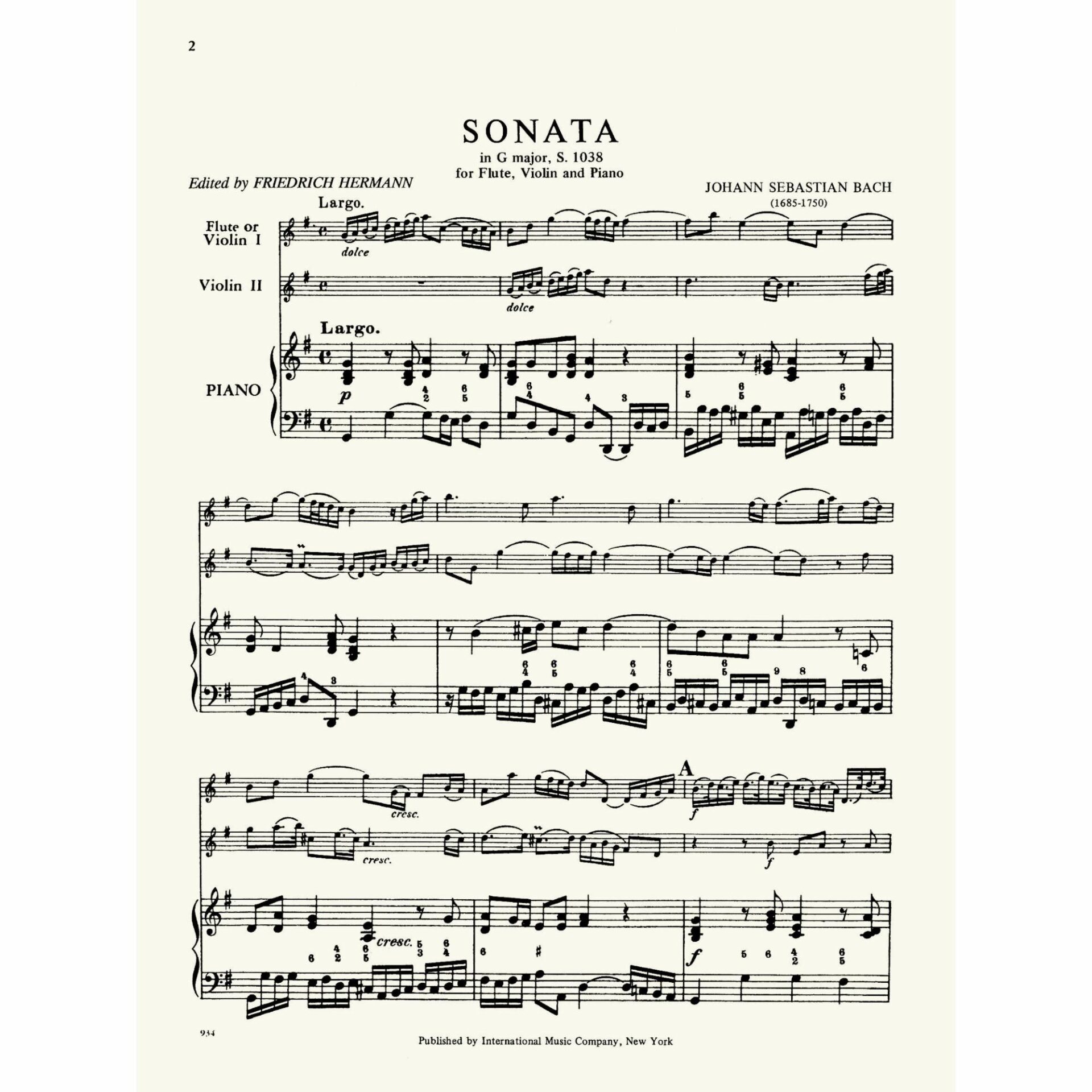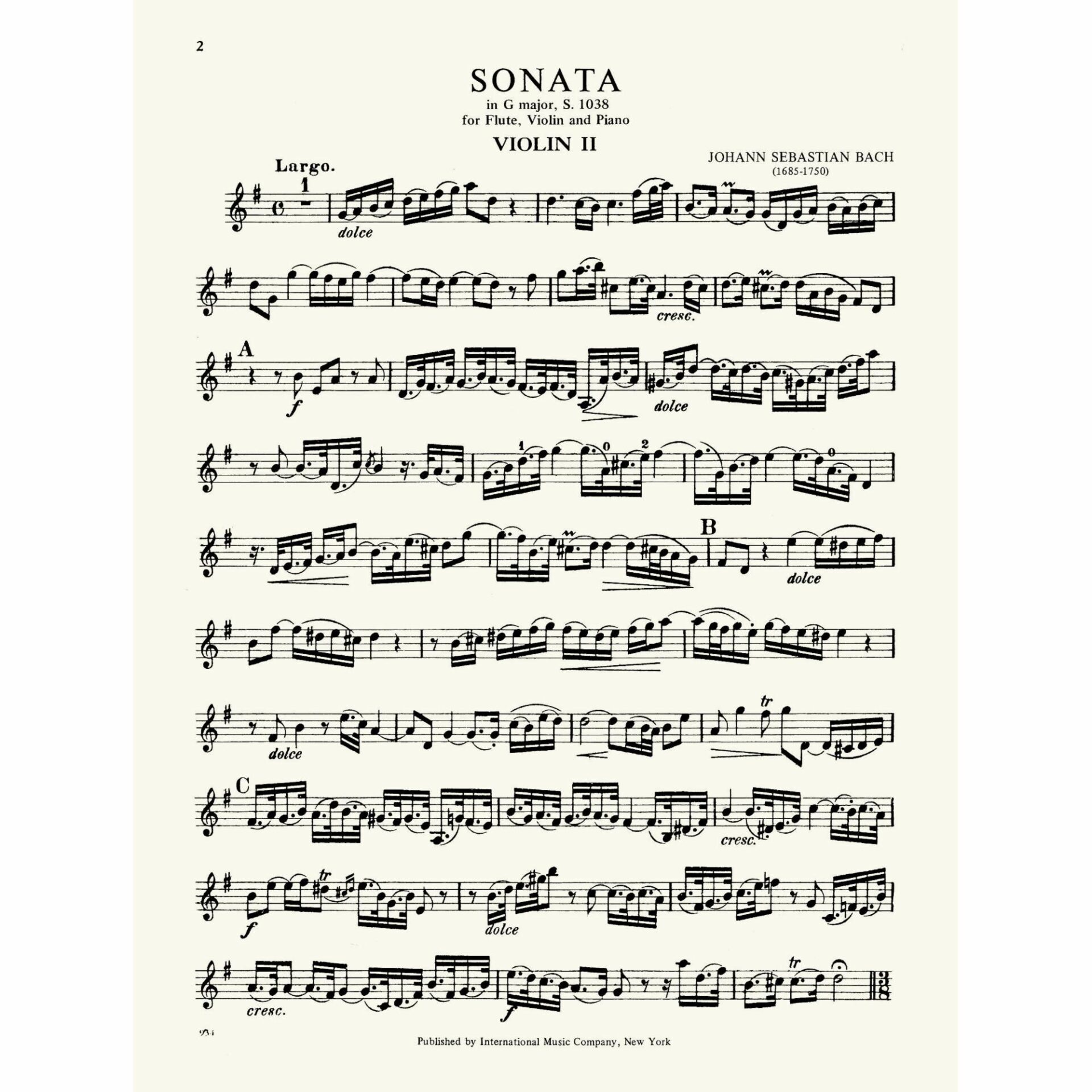 Bach — Sonata in G Major, S. 1038 for Two Violins and Piano