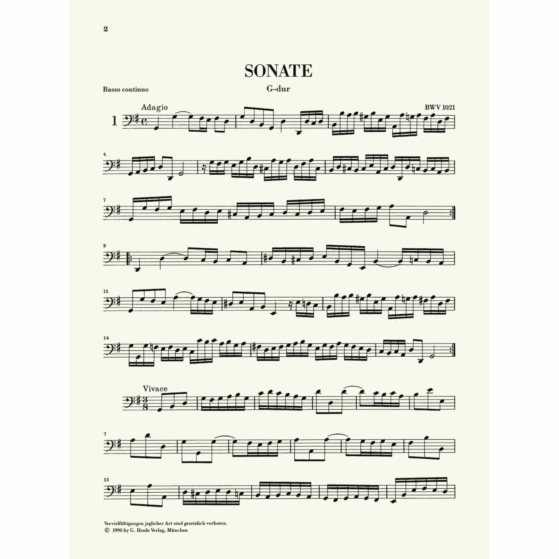 • Sonata in G Major, BWV 1021