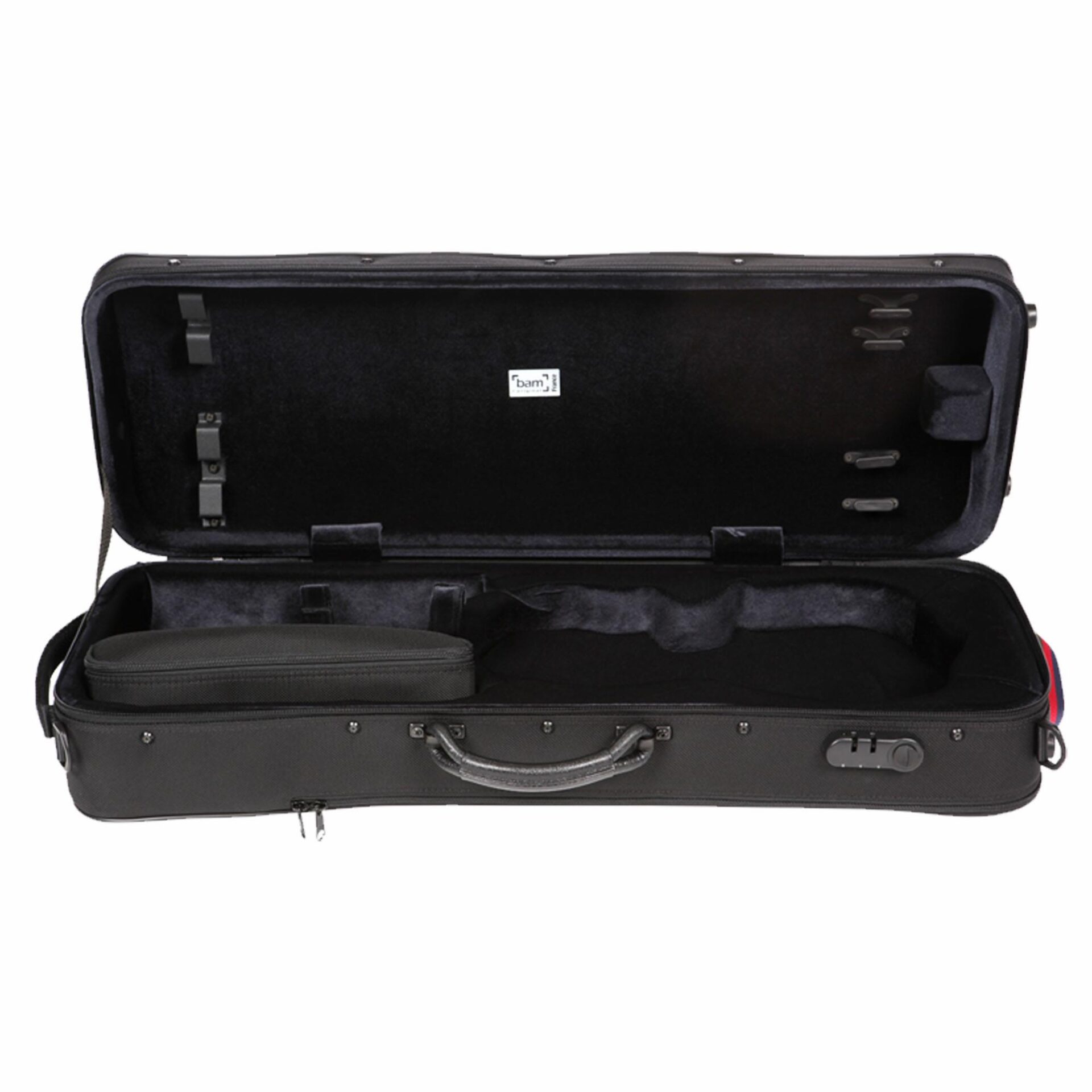 INSIDE FEATURES : Inside cradle made of injected high density polyurethane foam, protecting the instrument against thermal shock, ABS reinforcements in the internal structure. Removable accessory pouch, 4 bow holders.