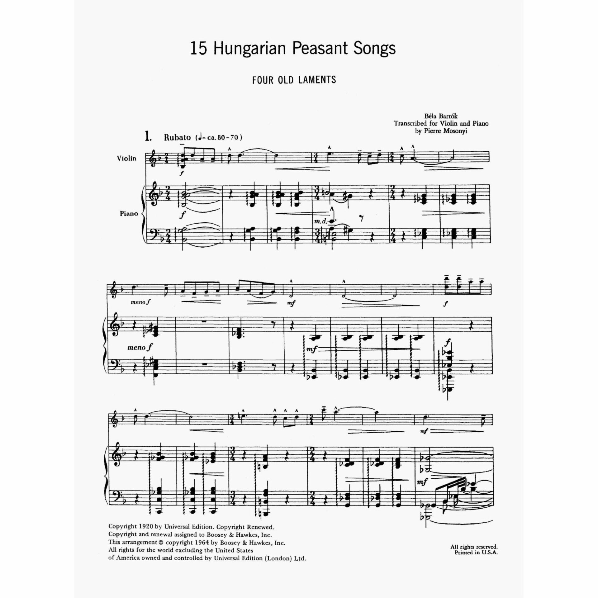 Bartok — 15 Hungarian Peasant Songs for Violin and Piano