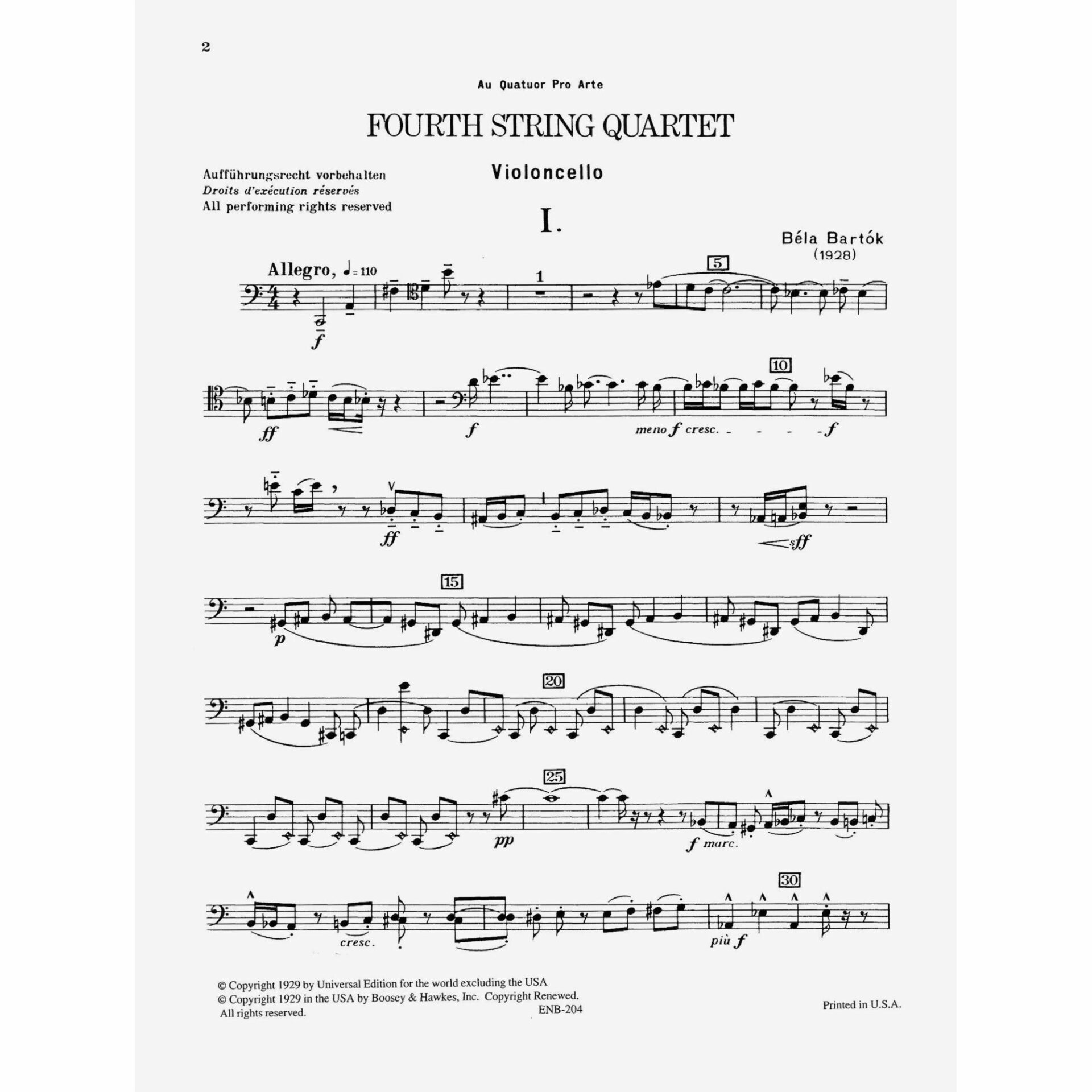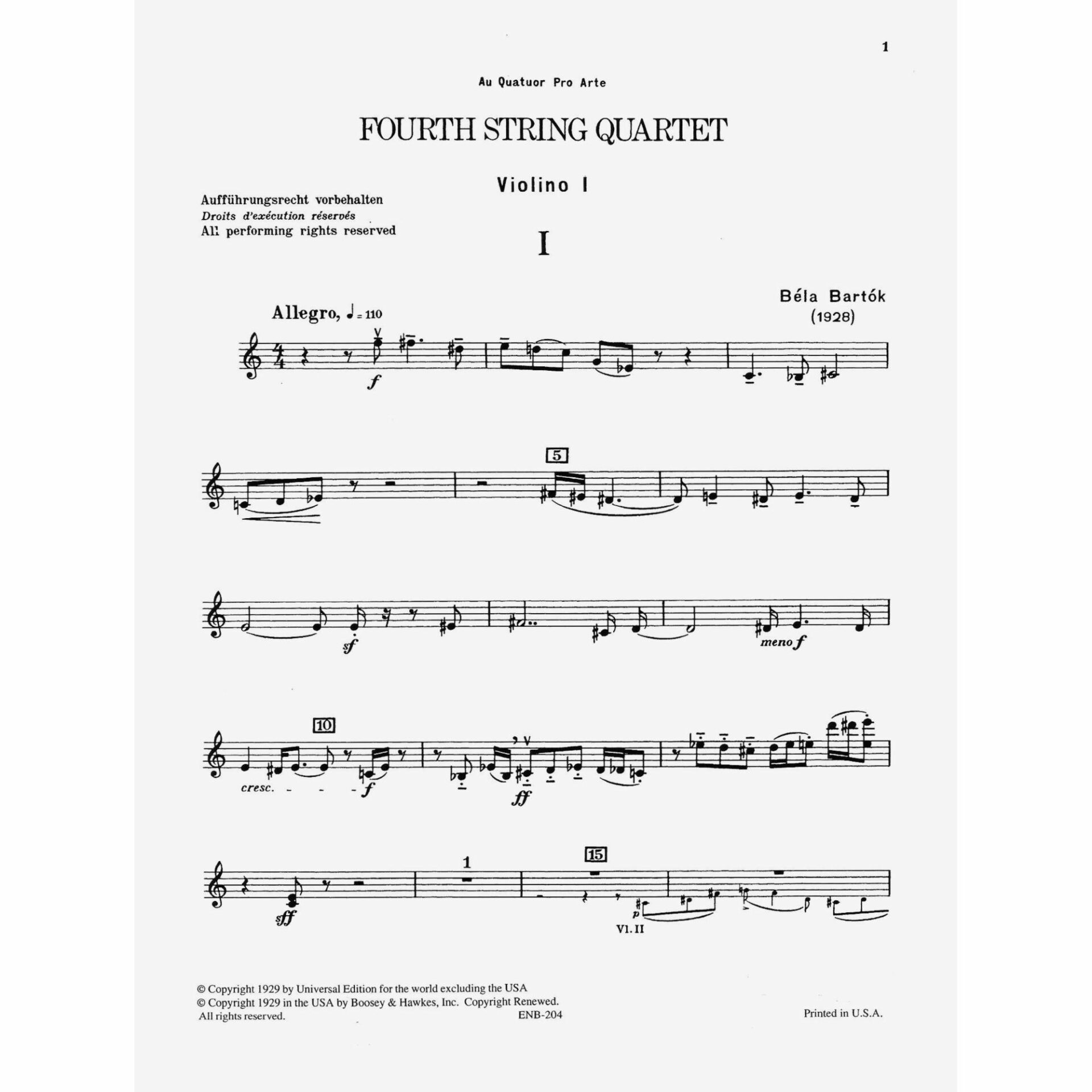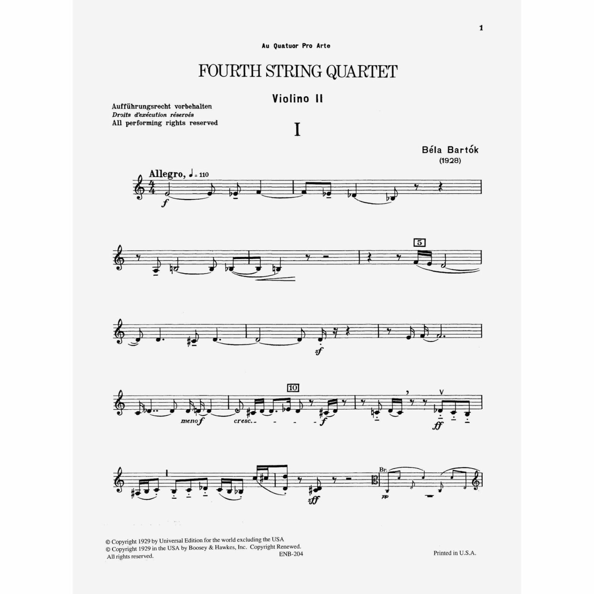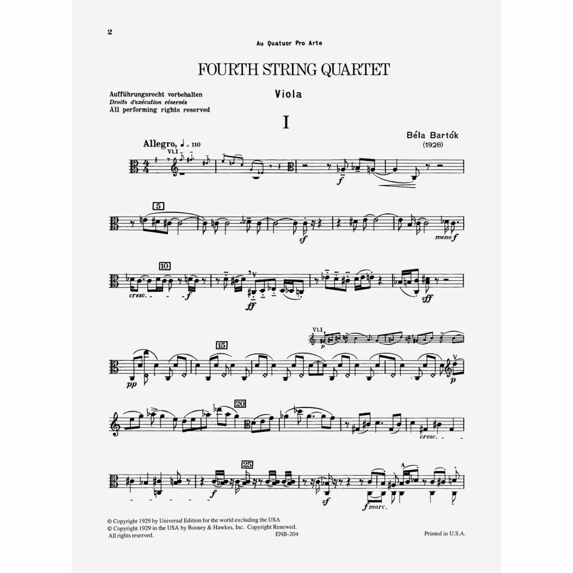 Bartok — Fourth String Quartet