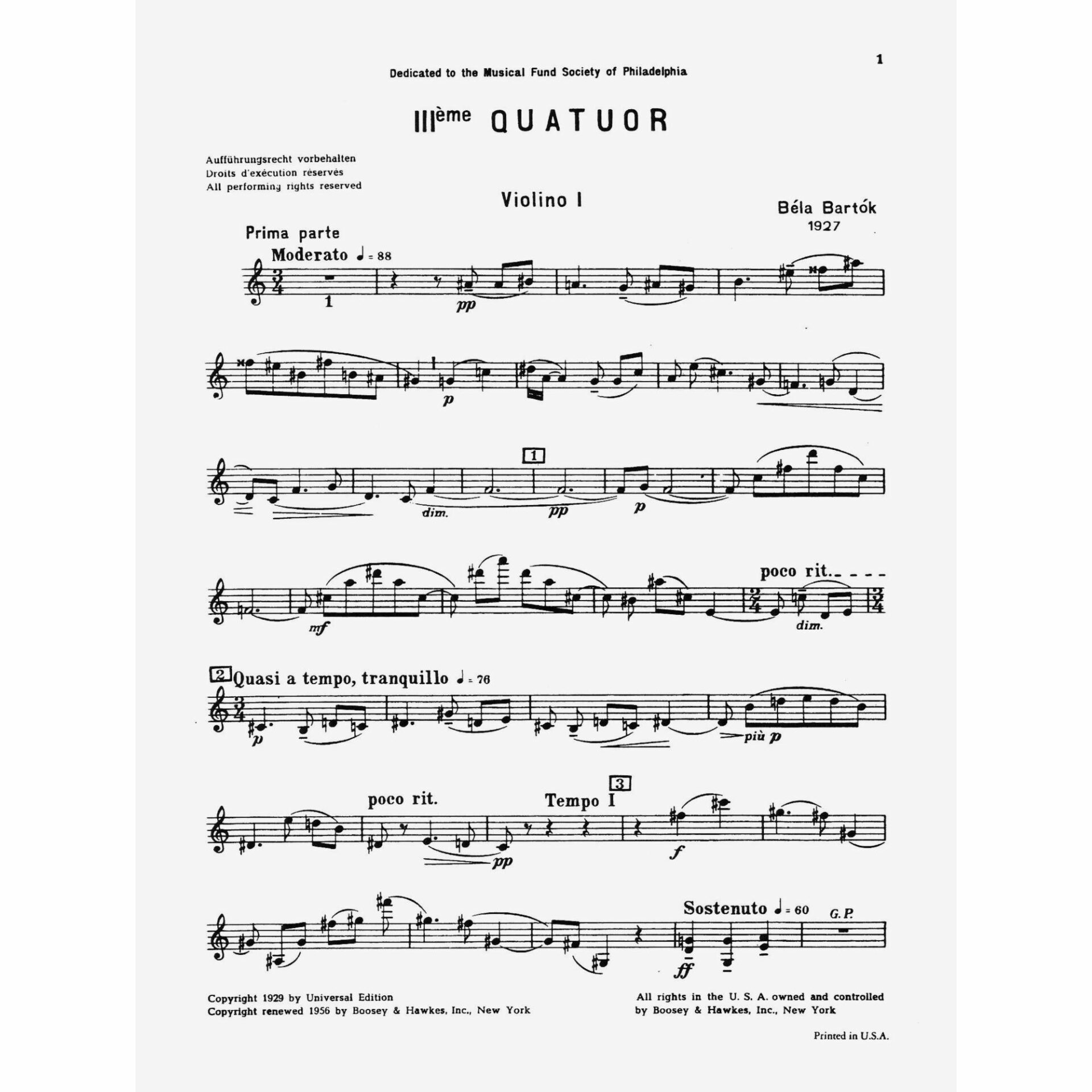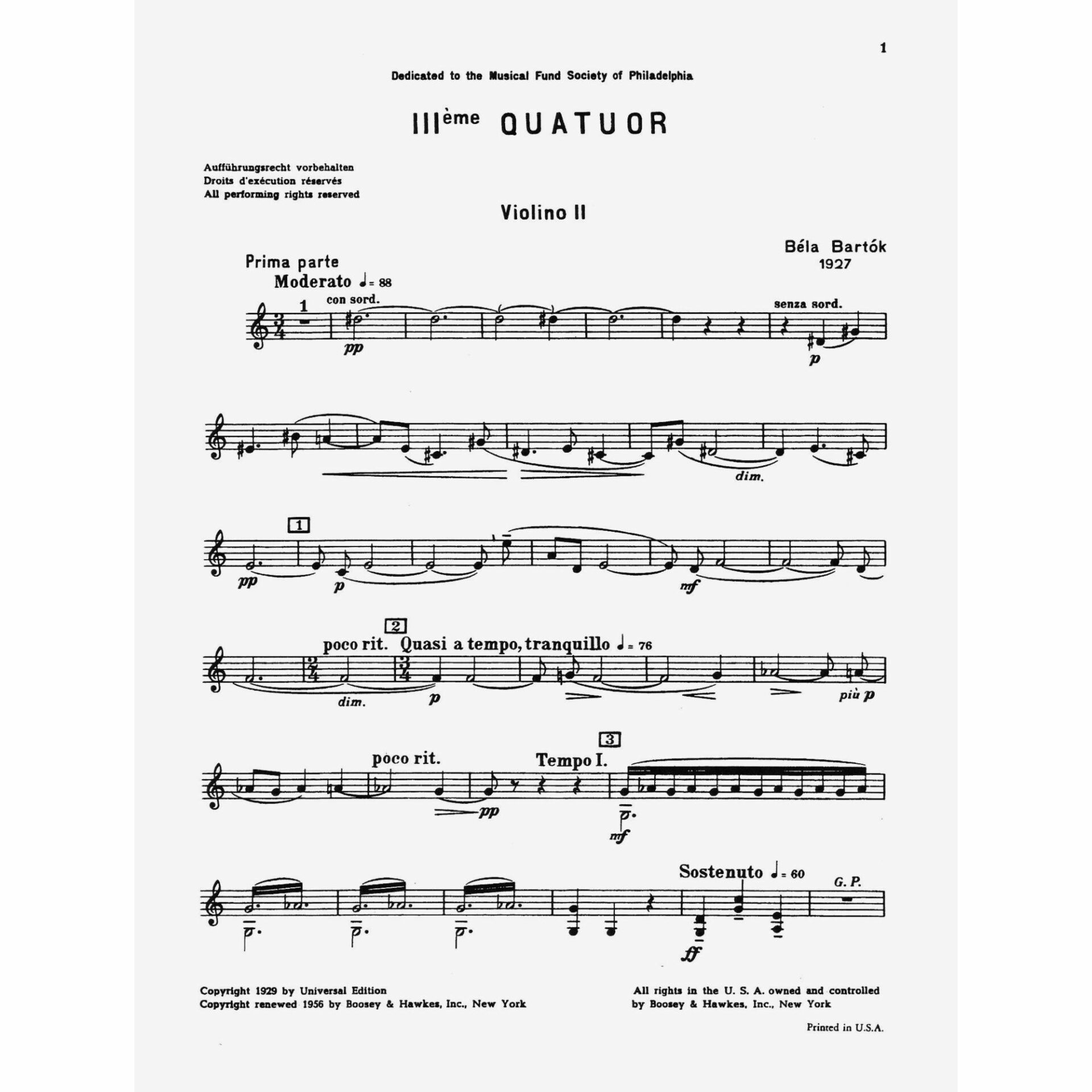 Bartok — Third String Quartet