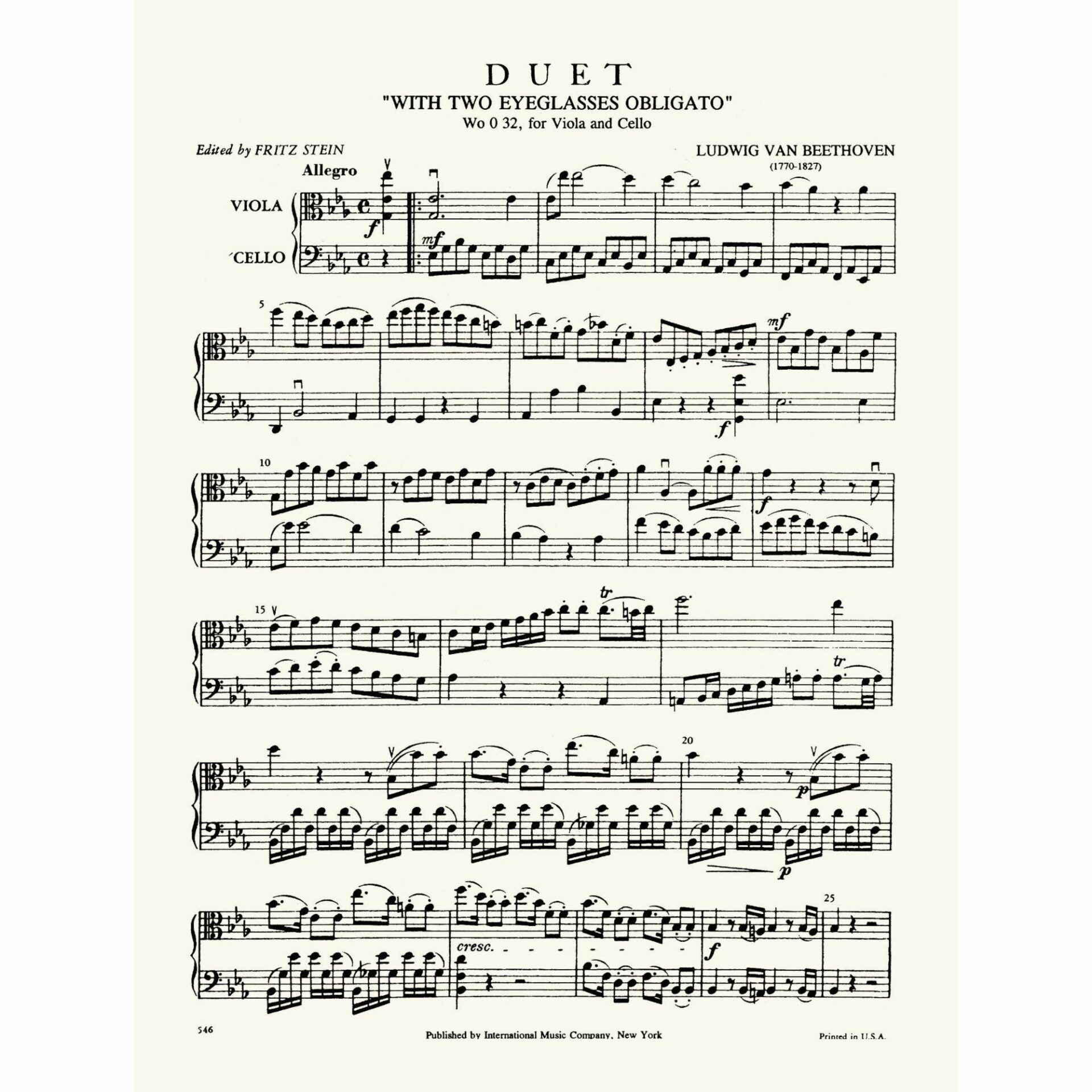 Title: Duet “With Two Eyeglasses Obligato”, WoO 32