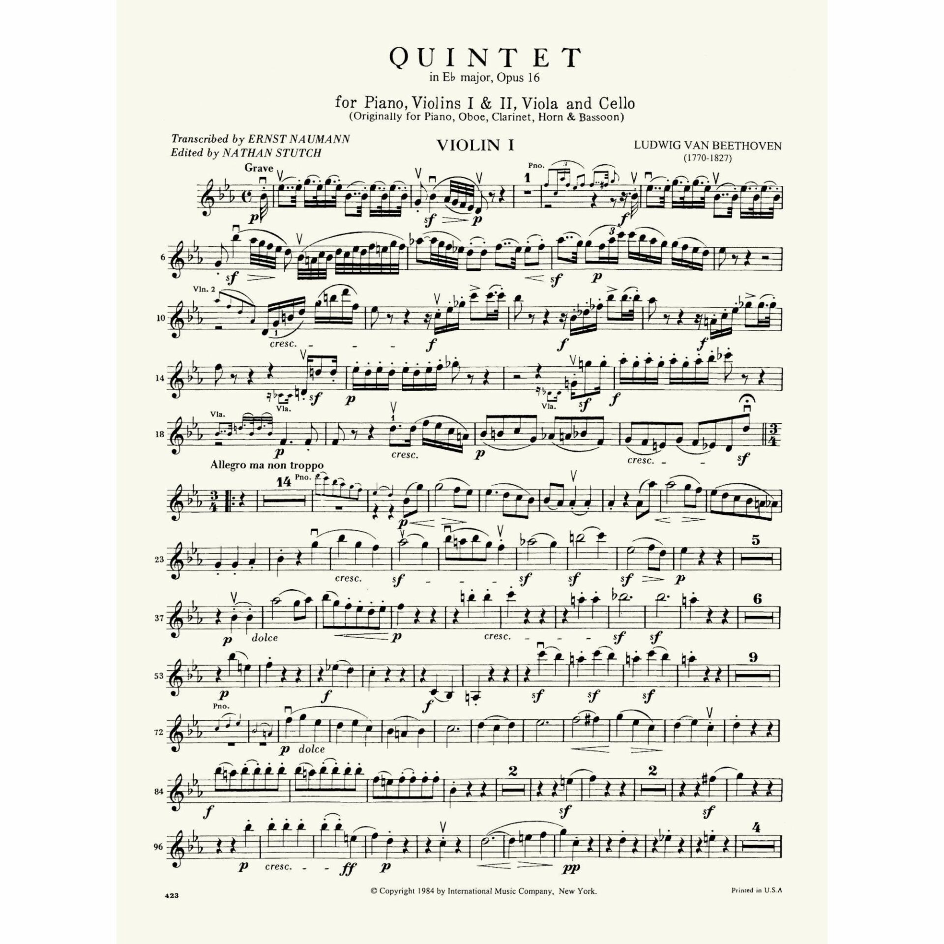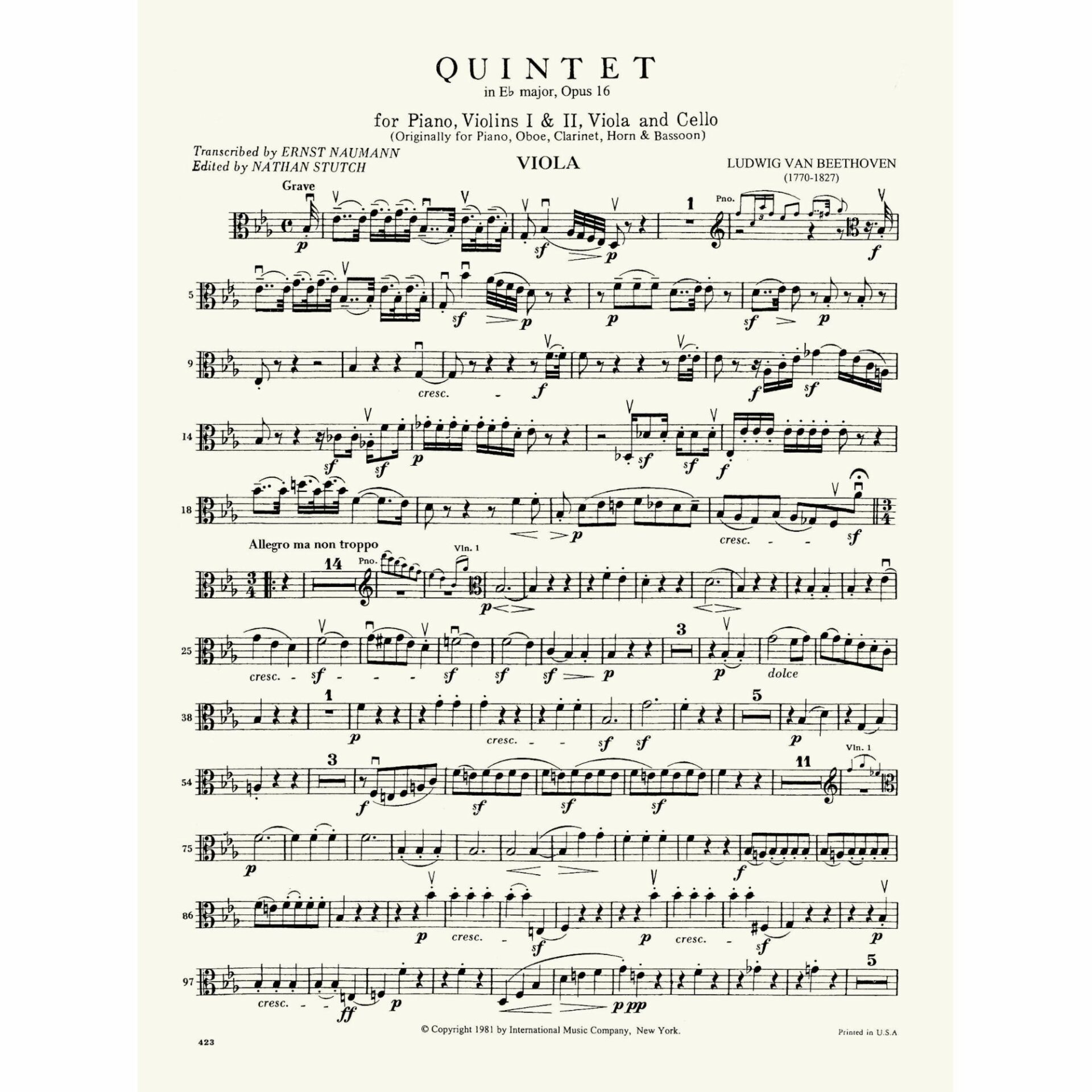 Title: Quintet in E-flat Major, Op. 16