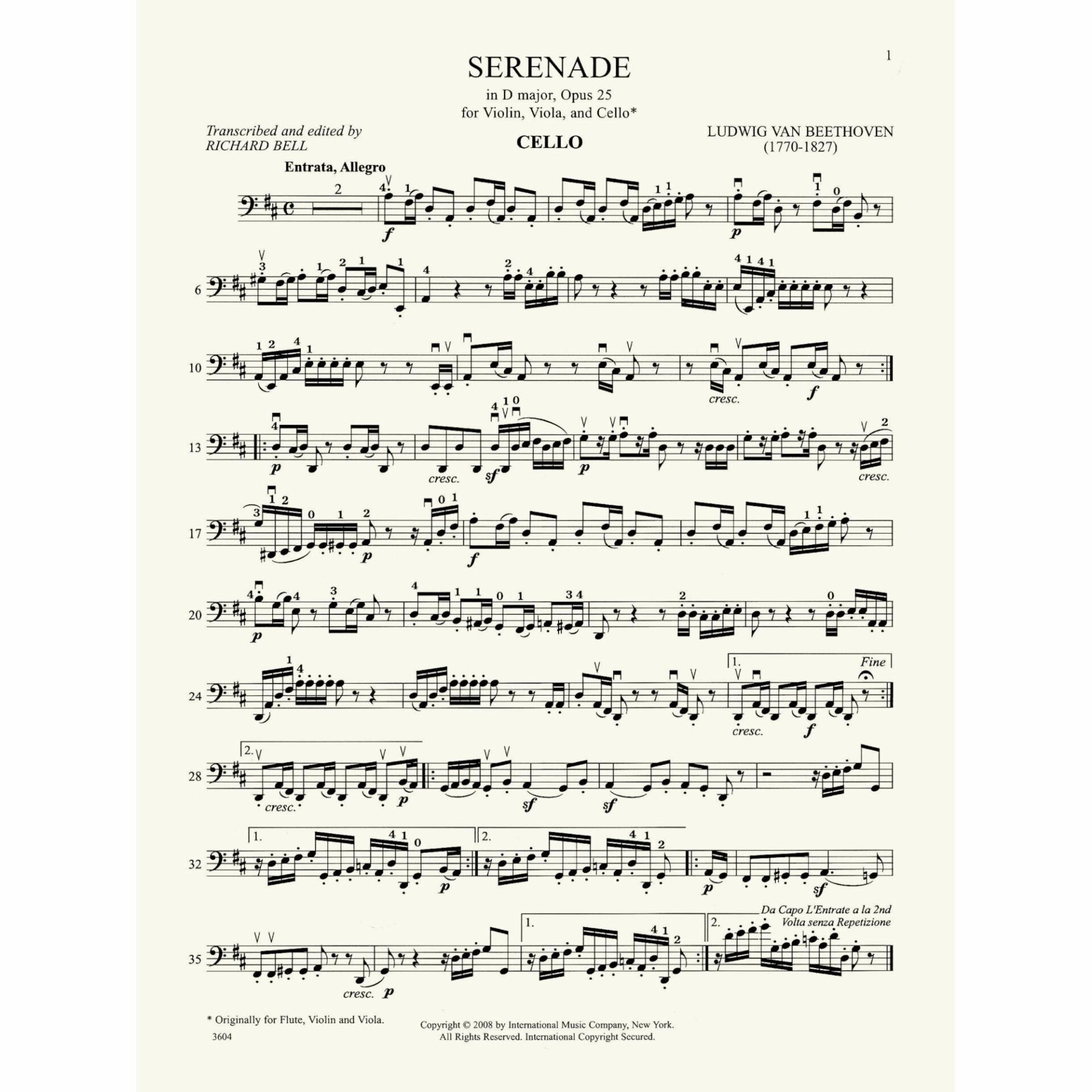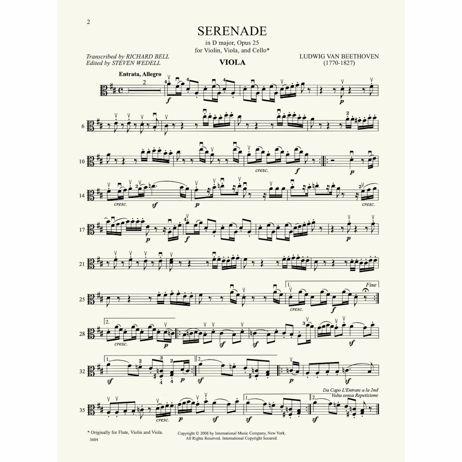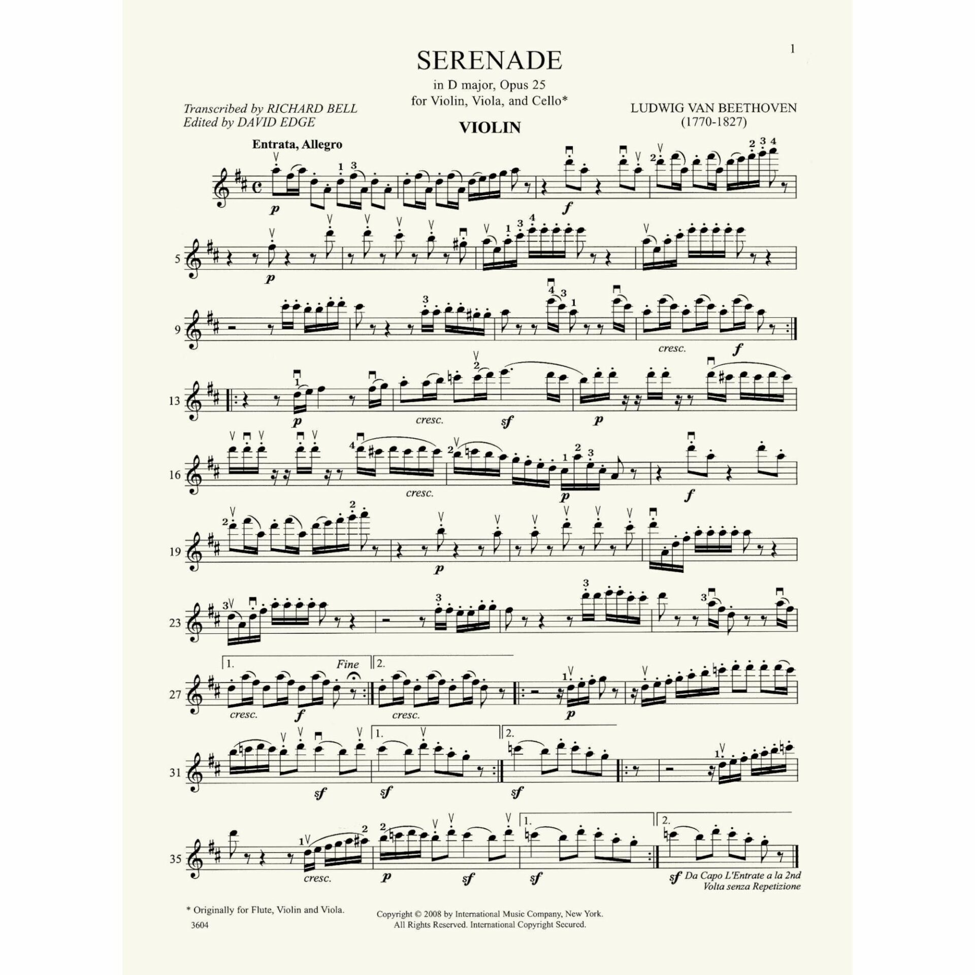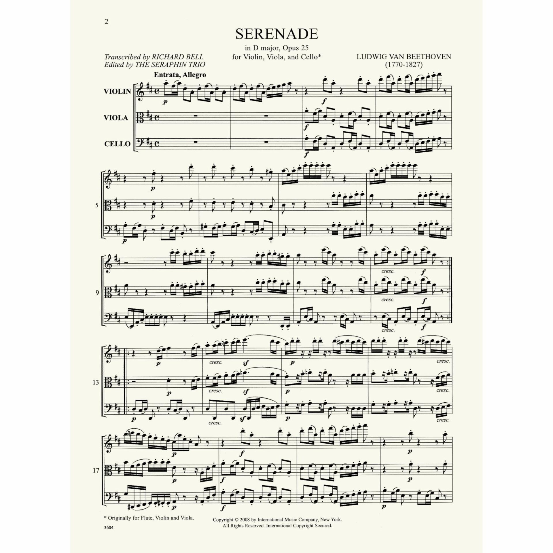 Title: Serenade in D Major, Op. 25