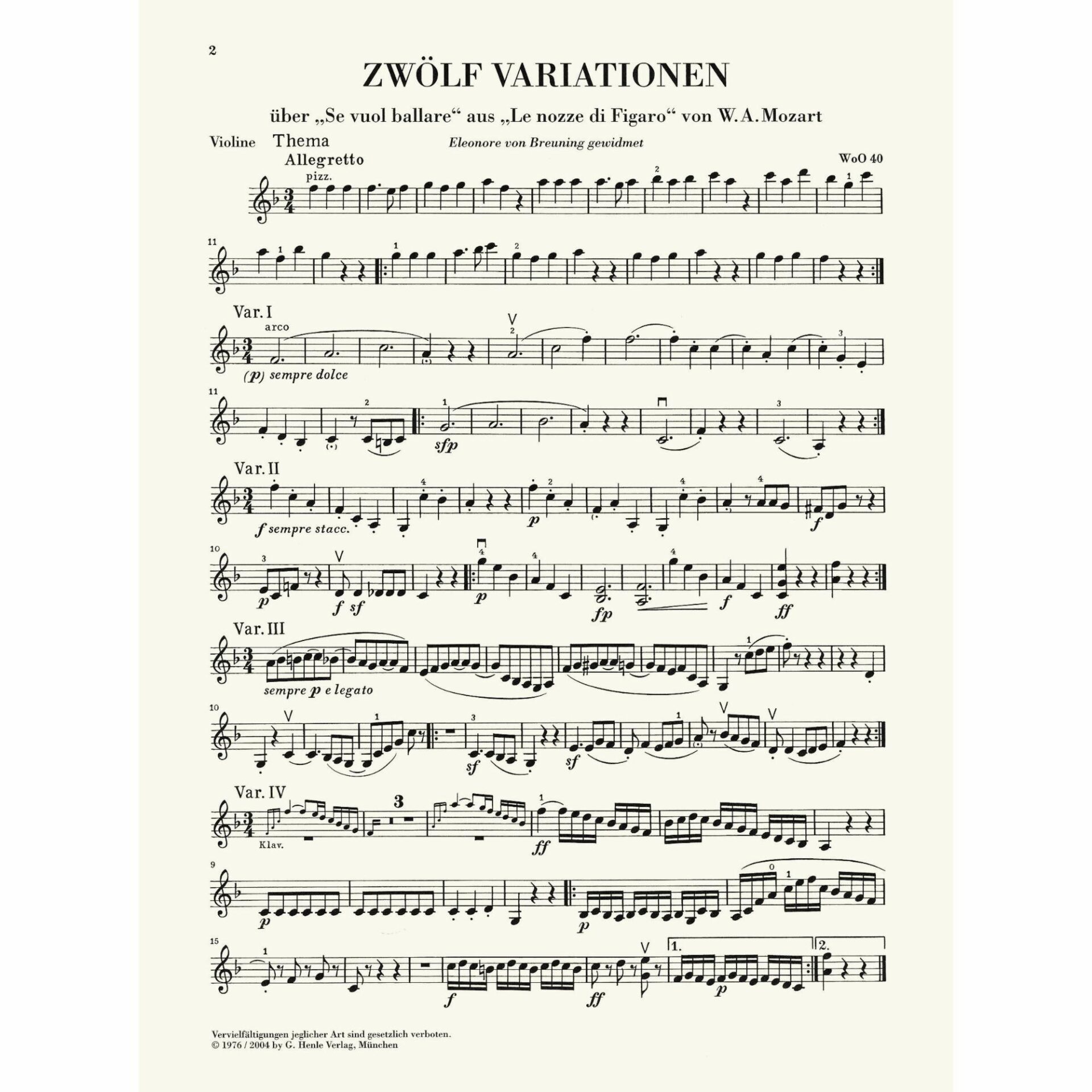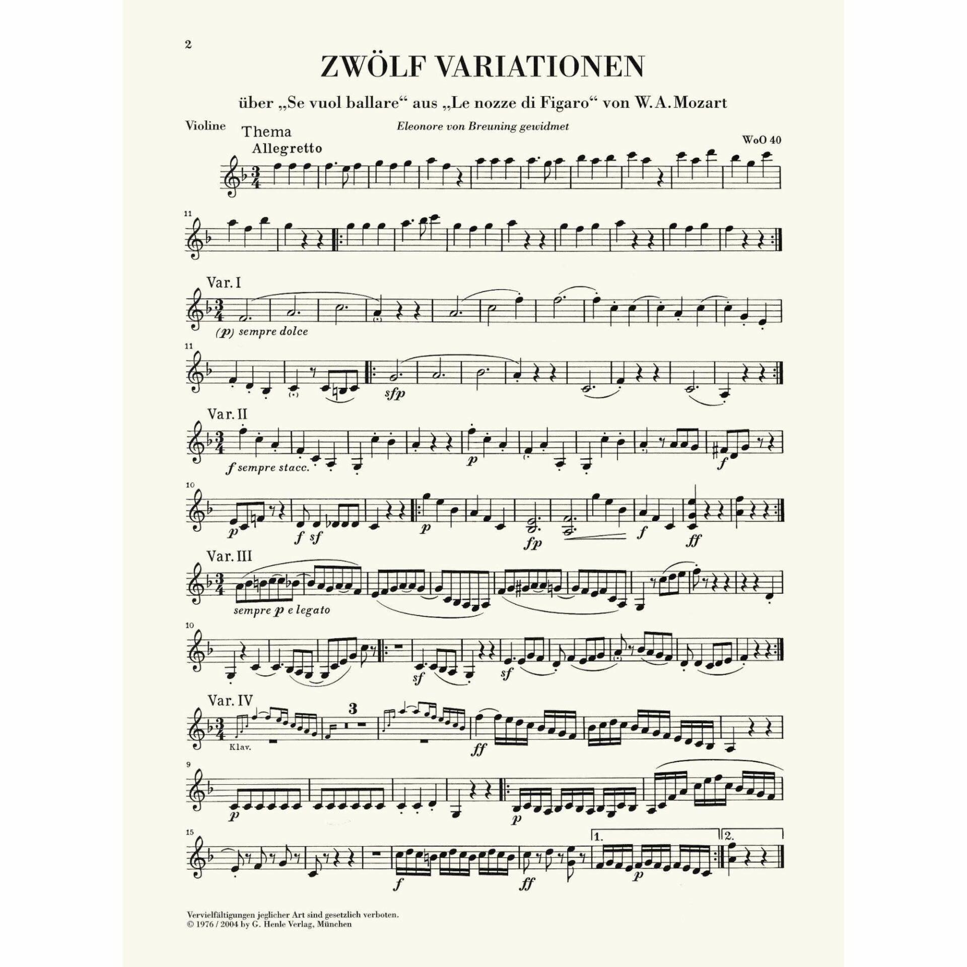 - Variations in F Major on “Se vuol ballare” from The Marriage of Figaro, WoO 40