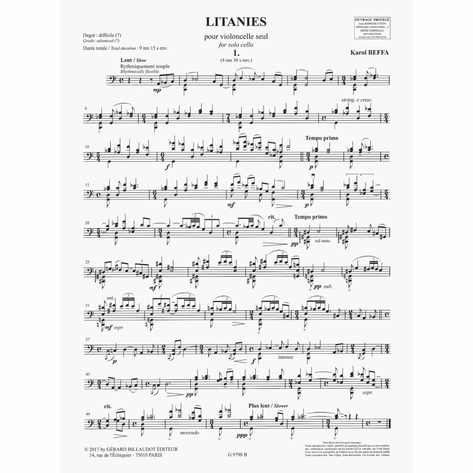 Beffa — Litanies for Solo Cello
