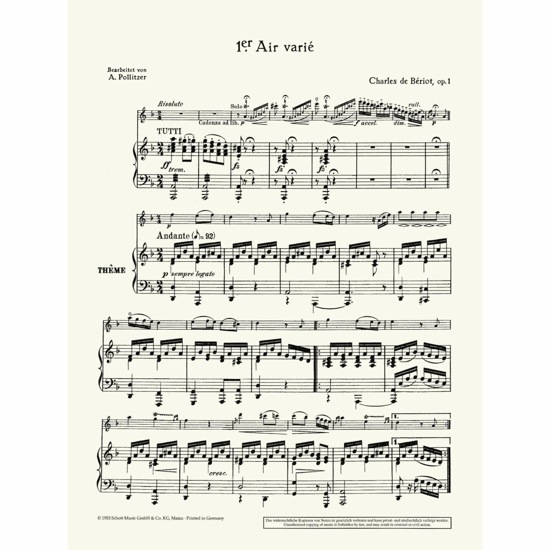 Title: 1er air varie (Air with Variations No. 1), Op. 1