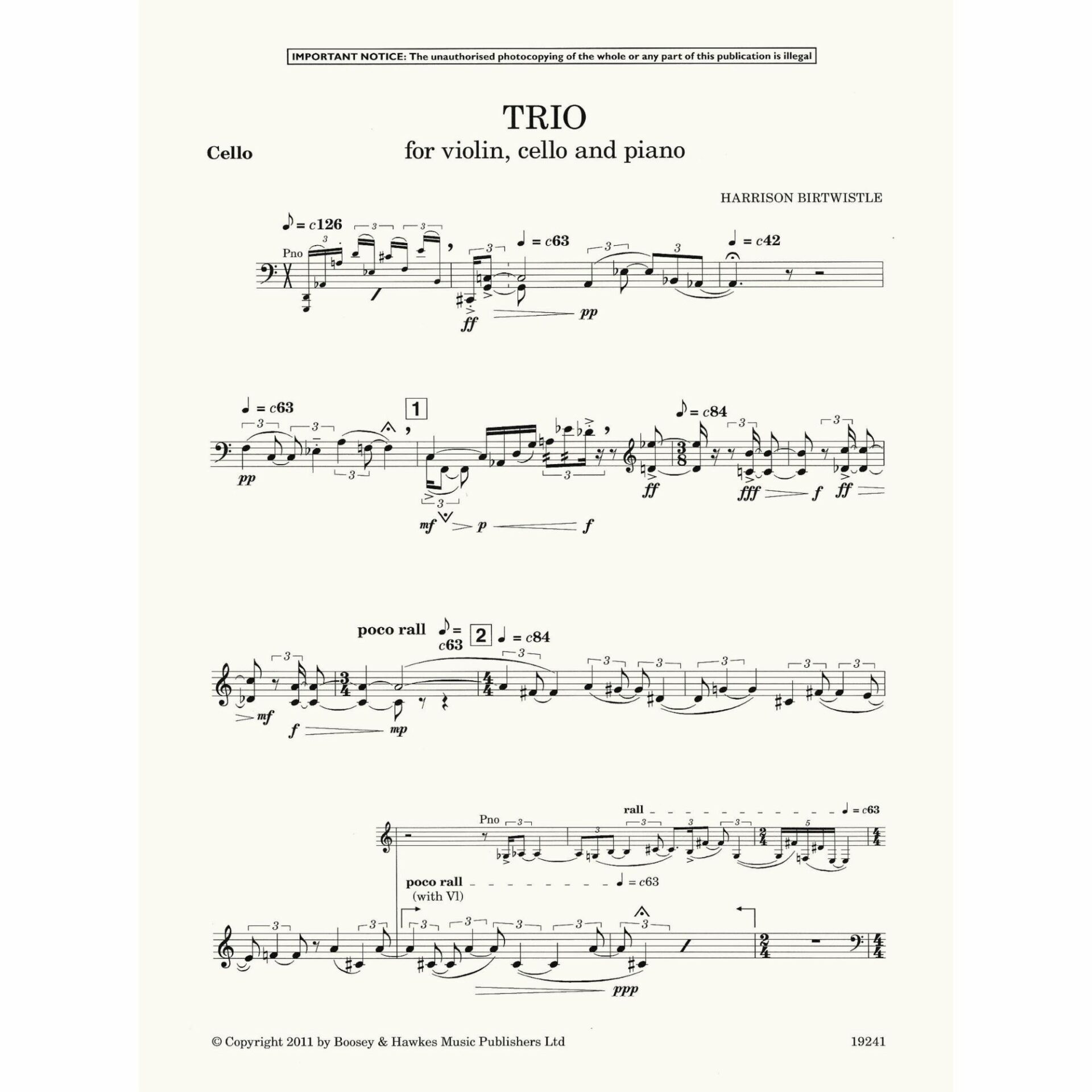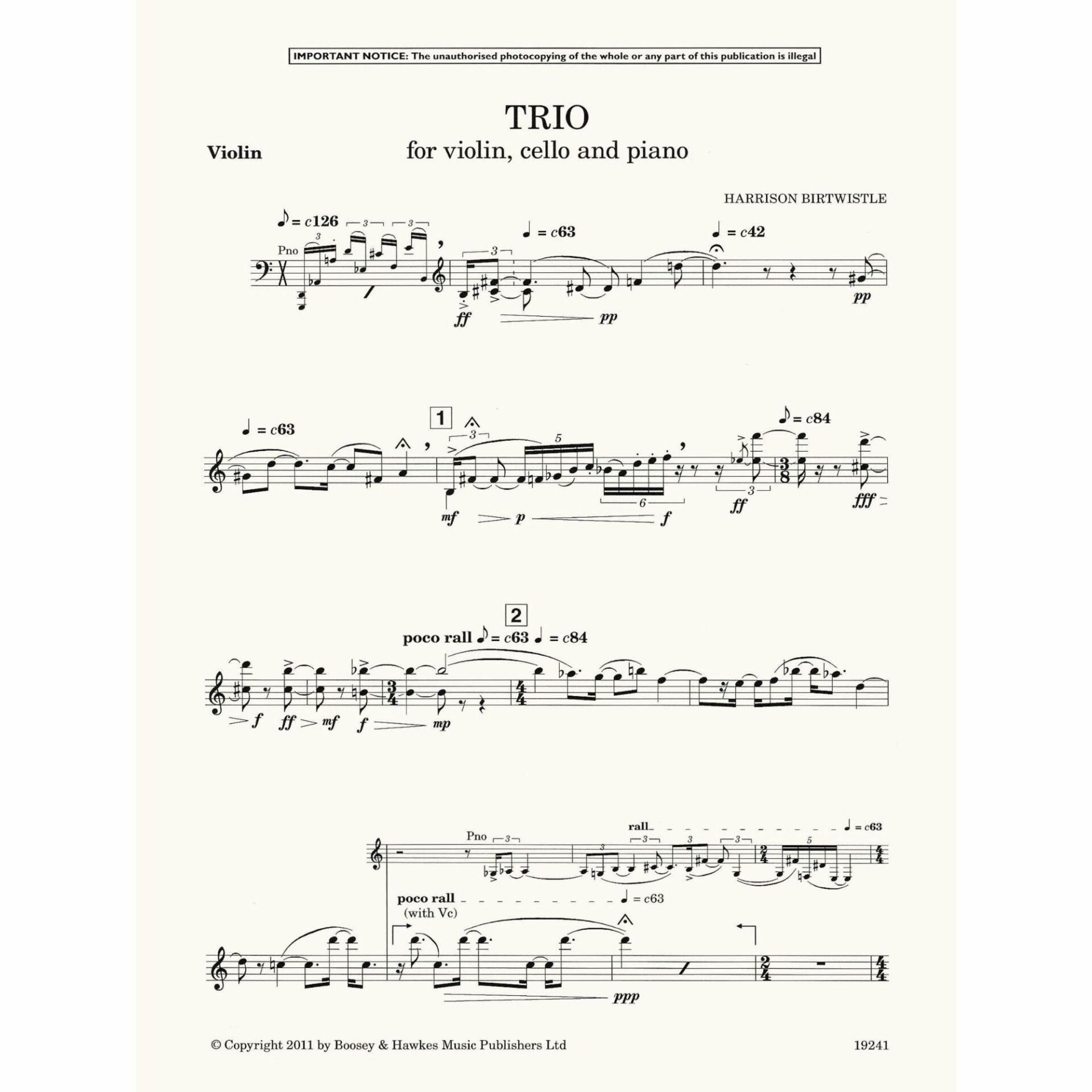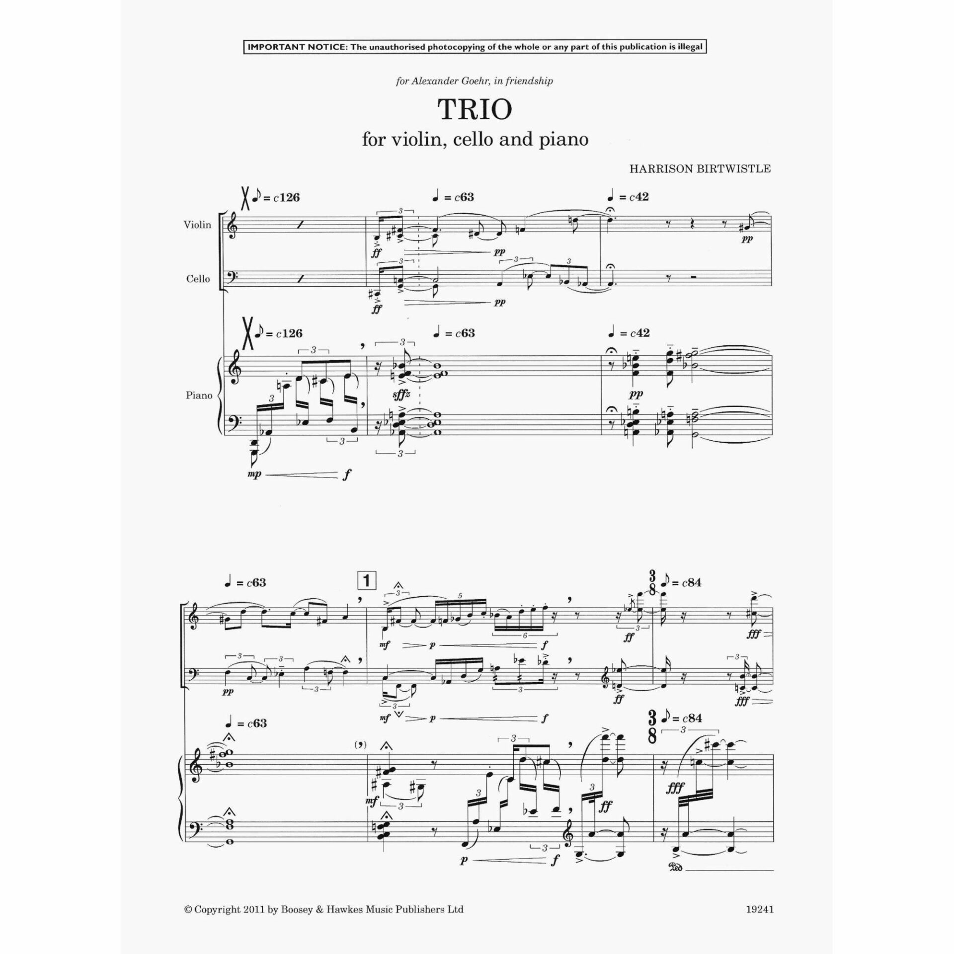 Birtwistle — Trio for Violin, Cello, and Piano