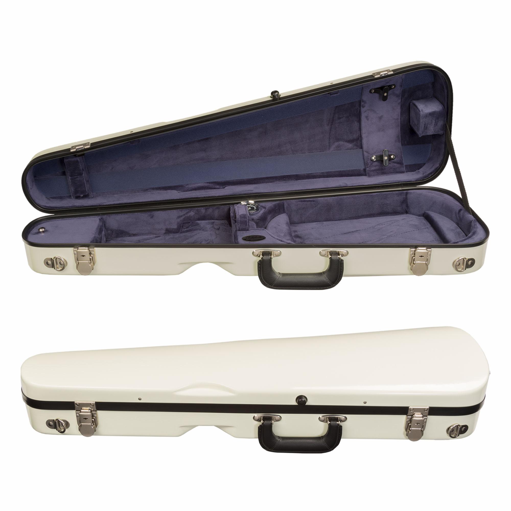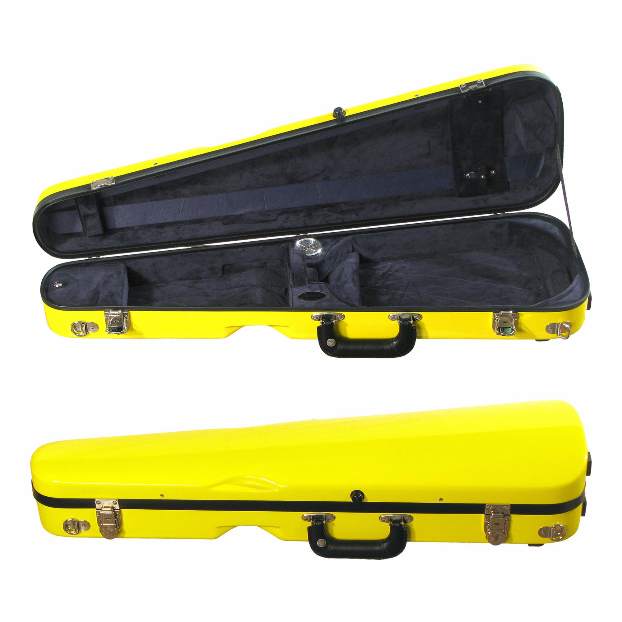 The Bobelock fiberglass Arrow shaped model #1027 is a new look on an old favorite. The slim design adds to the strength of the case while cutting the overall weight. The interior pocket has been enlarged for more protection plus more space has been added for shoulder rest storage. Shoulder straps and instrument blanket are included. Each case also comes with a protective, padded travel bag as well!