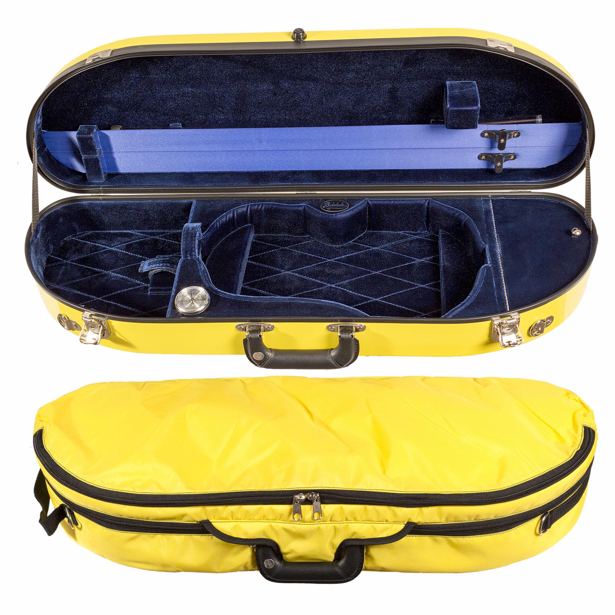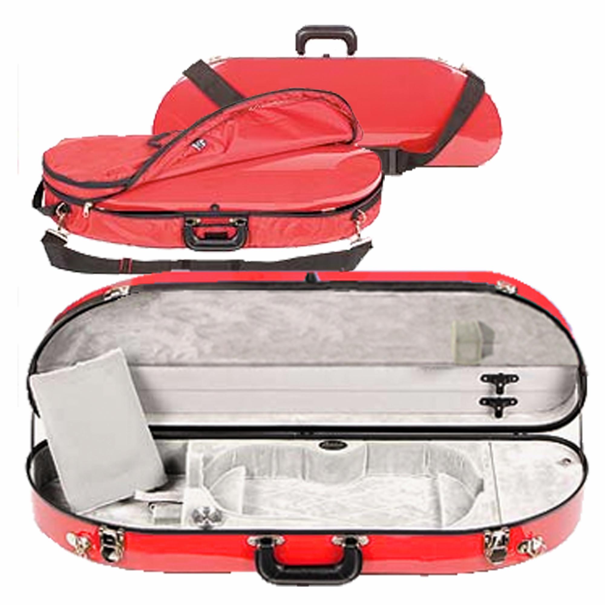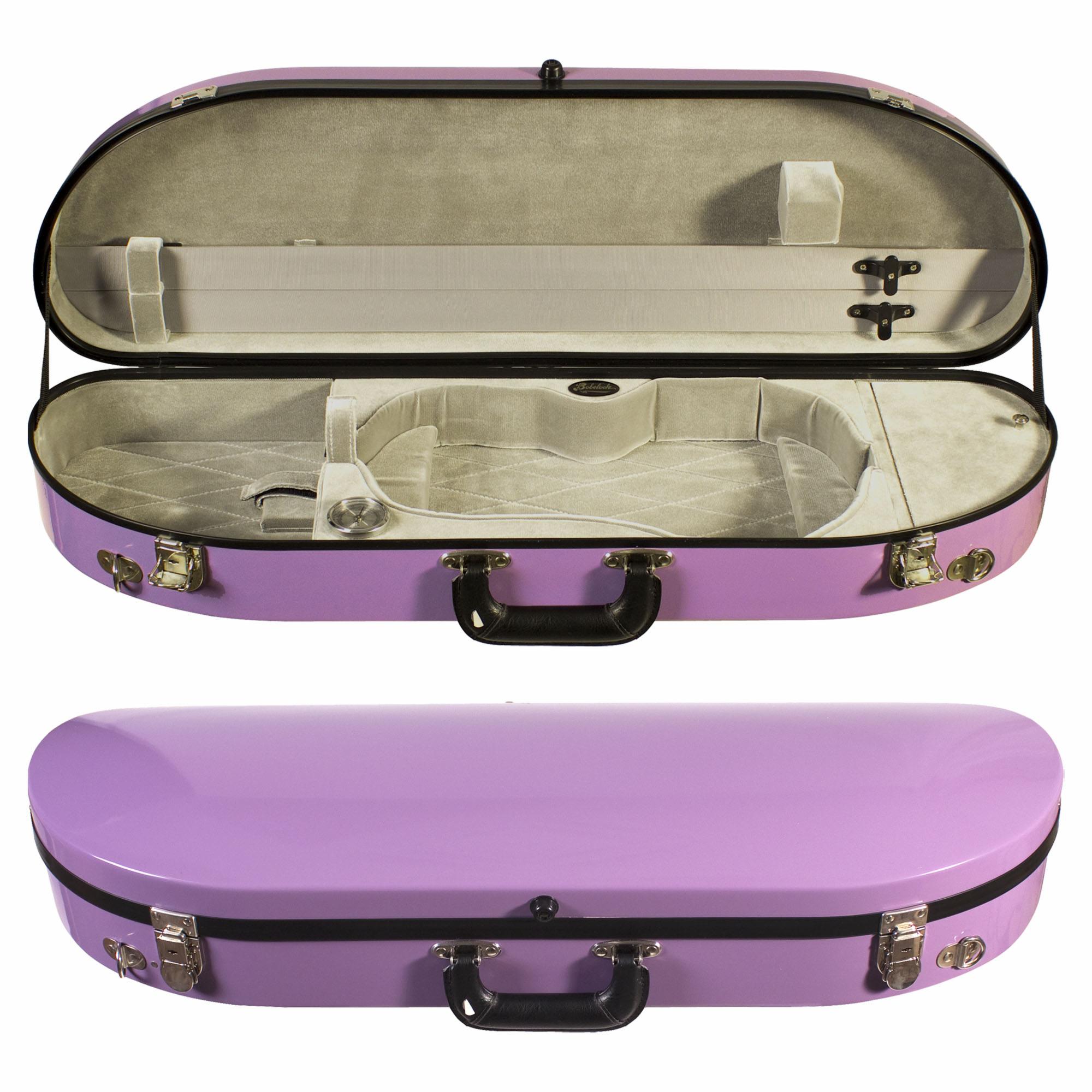 This Bobelock 1047 half moon violin case is made from fiberglass and is the newest fiberglass case to be added to our line of cases. It offers a stylish new exterior with a high gloss finish and a padded cover. Fiberglass is known for its strength and insulation and the #1047 fiberglass brings a new, lighter and trimmer case look. Interiors is plush velvet. Includes shoulder strap, hygrometer, humistat, and blanket. These cases also come with a padded travel cover!