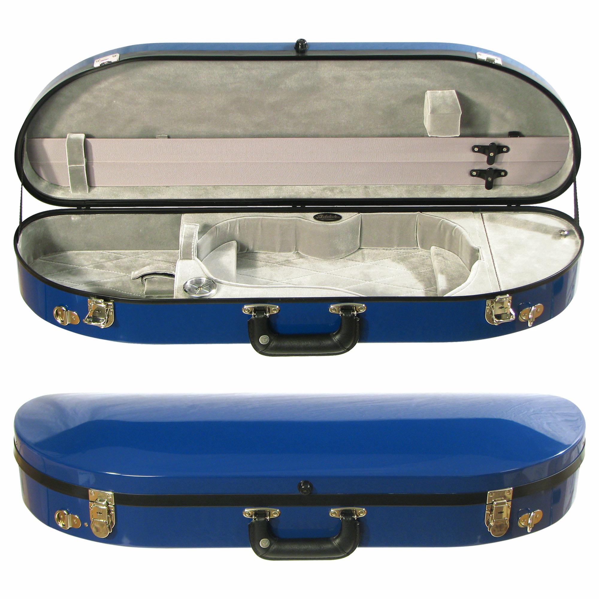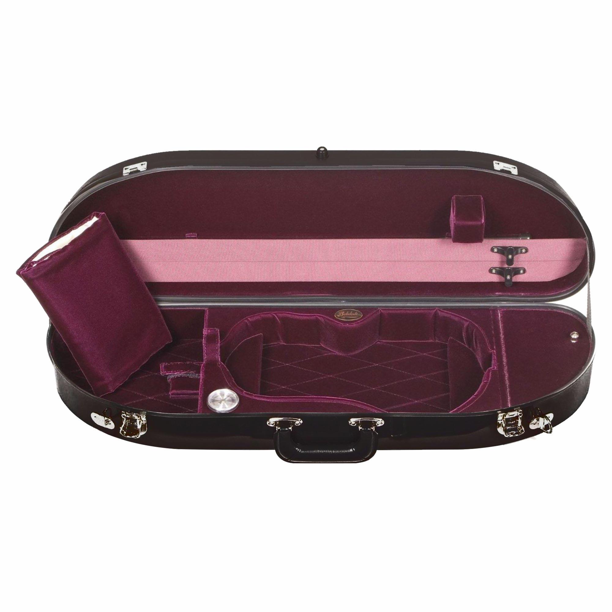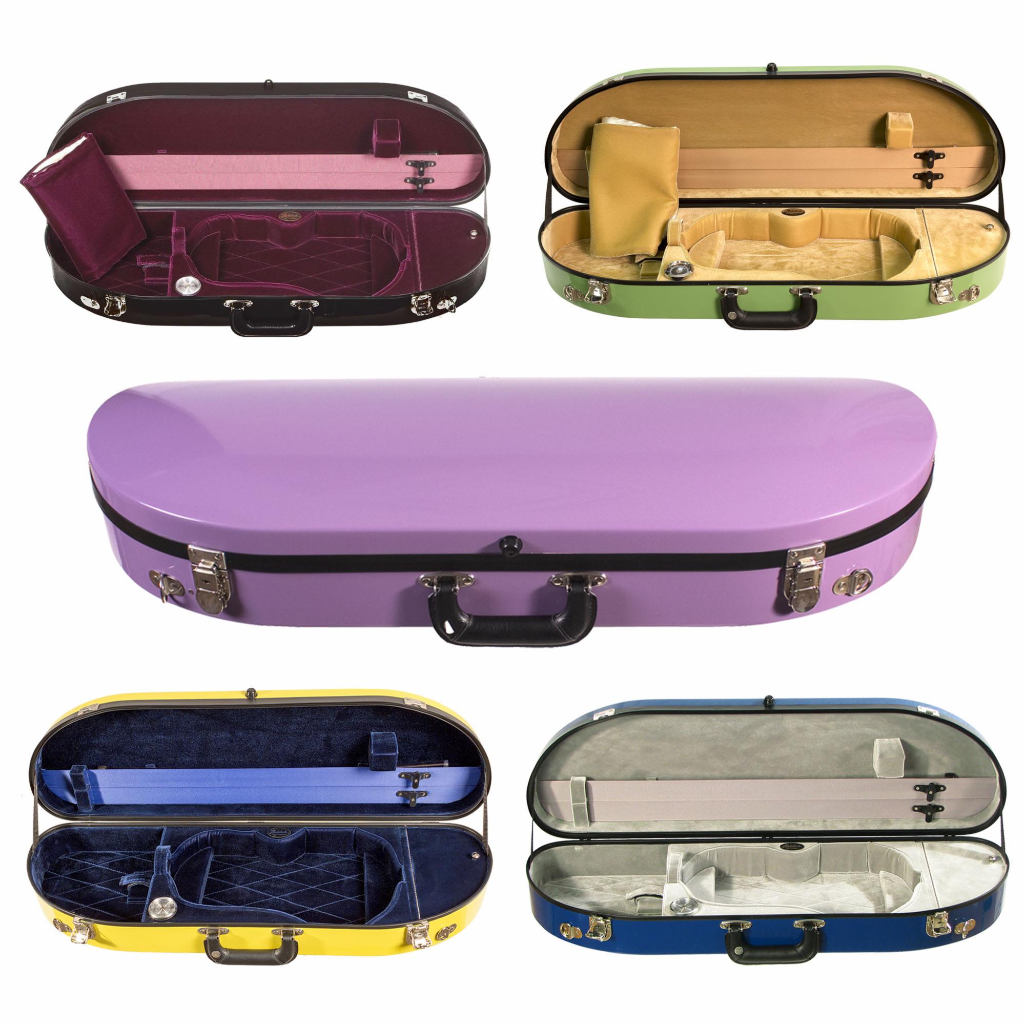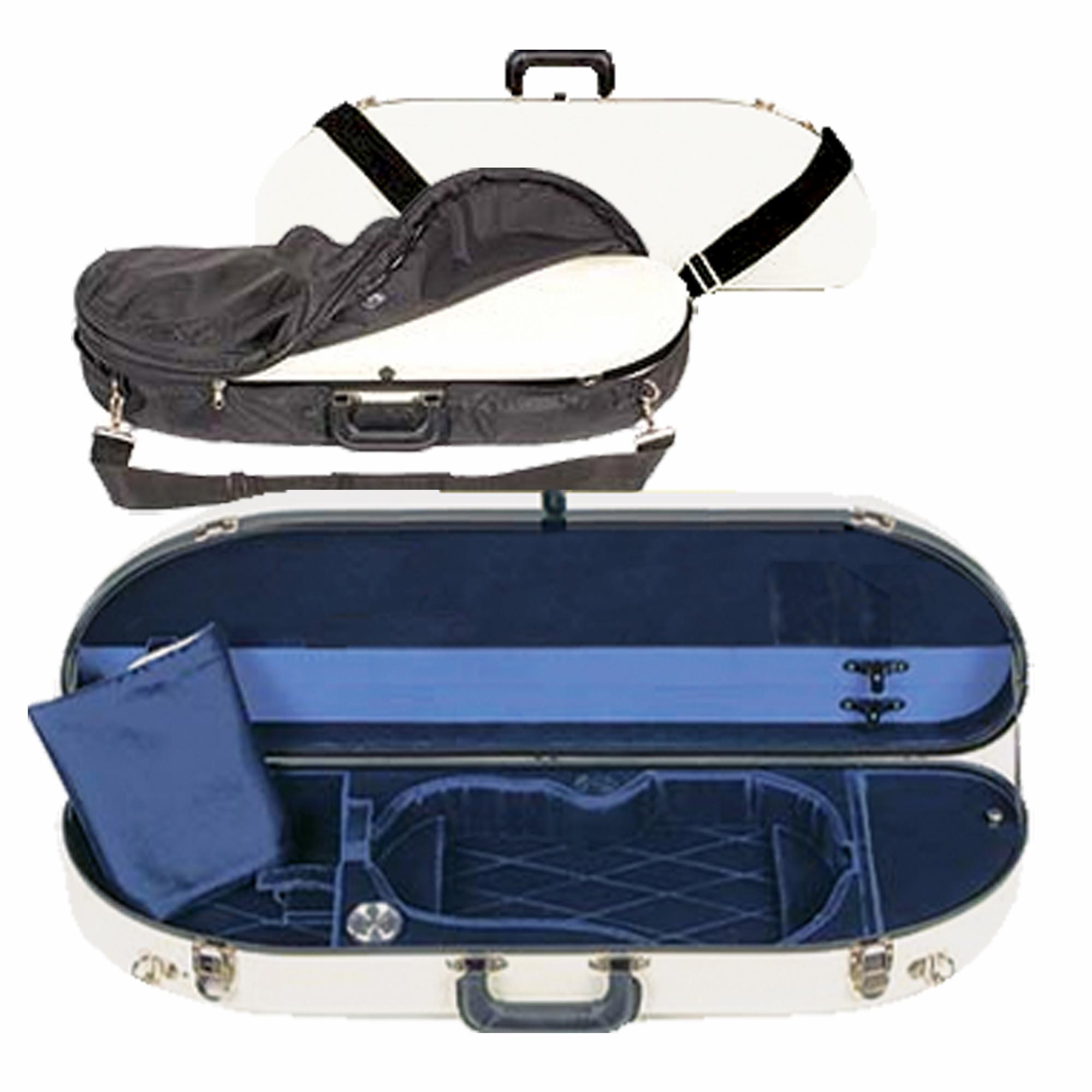 This Bobelock 1047 half moon violin case is made from fiberglass and is the newest fiberglass case to be added to our line of cases. It offers a stylish new exterior with a high gloss finish and a padded cover. Fiberglass is known for its strength and insulation and the #1047 fiberglass brings a new, lighter and trimmer case look. Interiors is plush velvet. Includes shoulder strap, hygrometer, humistat, and blanket. These cases also come with a padded travel cover!