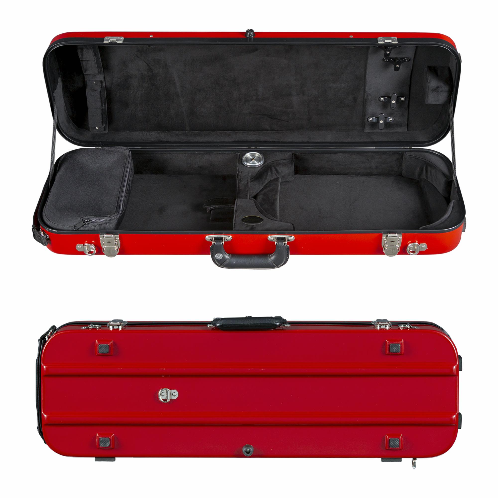 The Bobelock 1061 Fiberglass Lightweight Oblong Violin Case is a totally new style for the traditional oblong case. It features a glossy, colorful and strong fiberglass shell with a luxurious black velour interior. The 1061 comes with a large accessory pocket, tough flip latches and a weatherproof valance. Also includes a shoulder strap, hygrometer, humistat, and instrument blanket. 6.6 lbs.