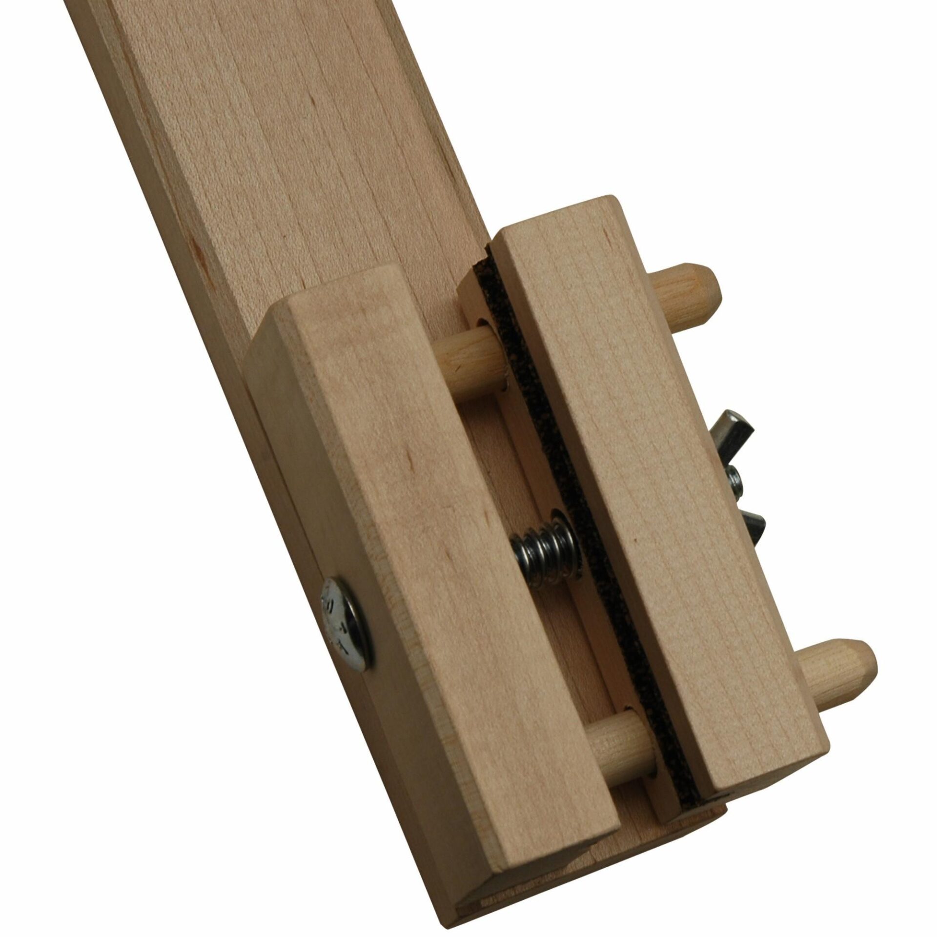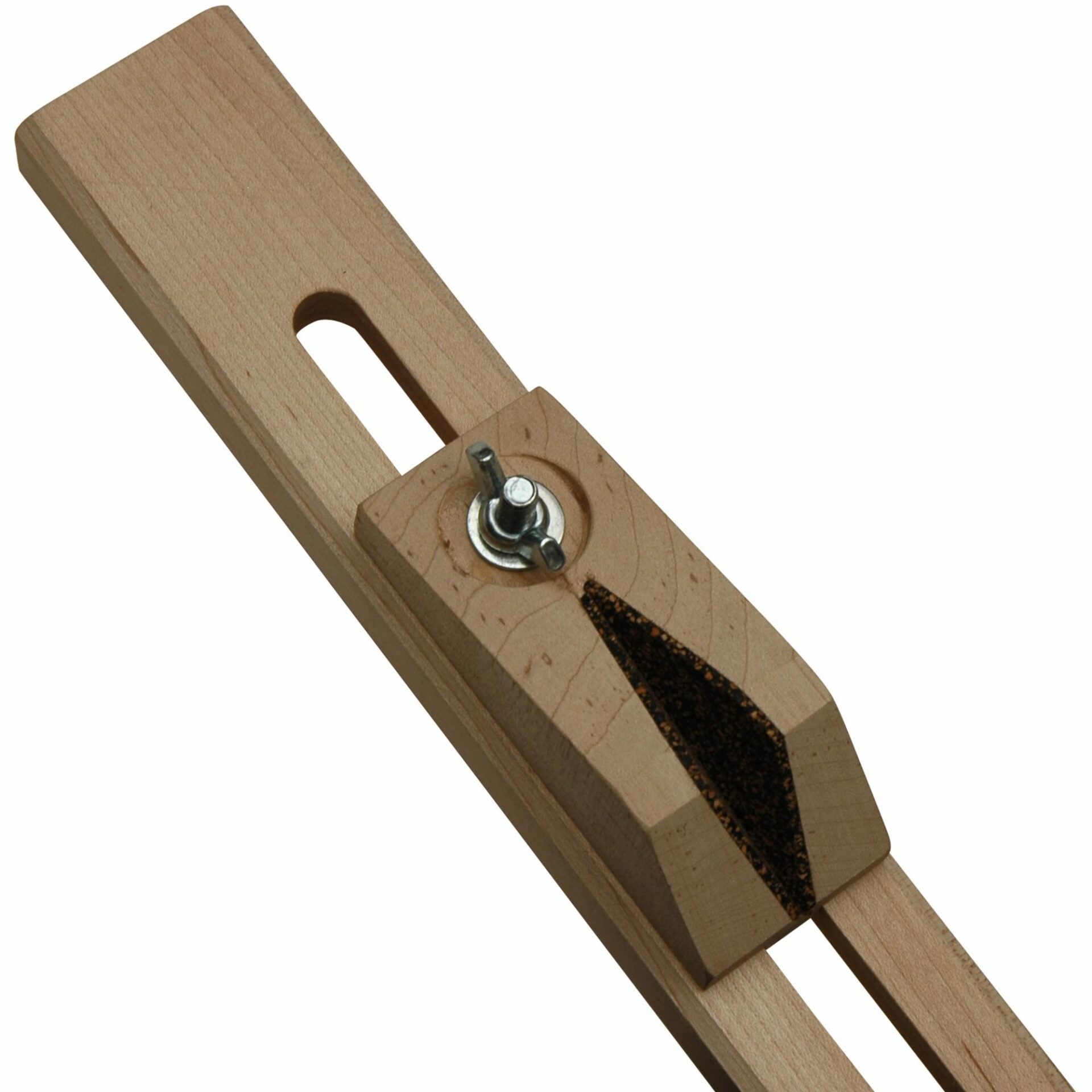 Secures bow while rehairing. Wooden with cushioned pads. The jig has adjustments for size of bow.