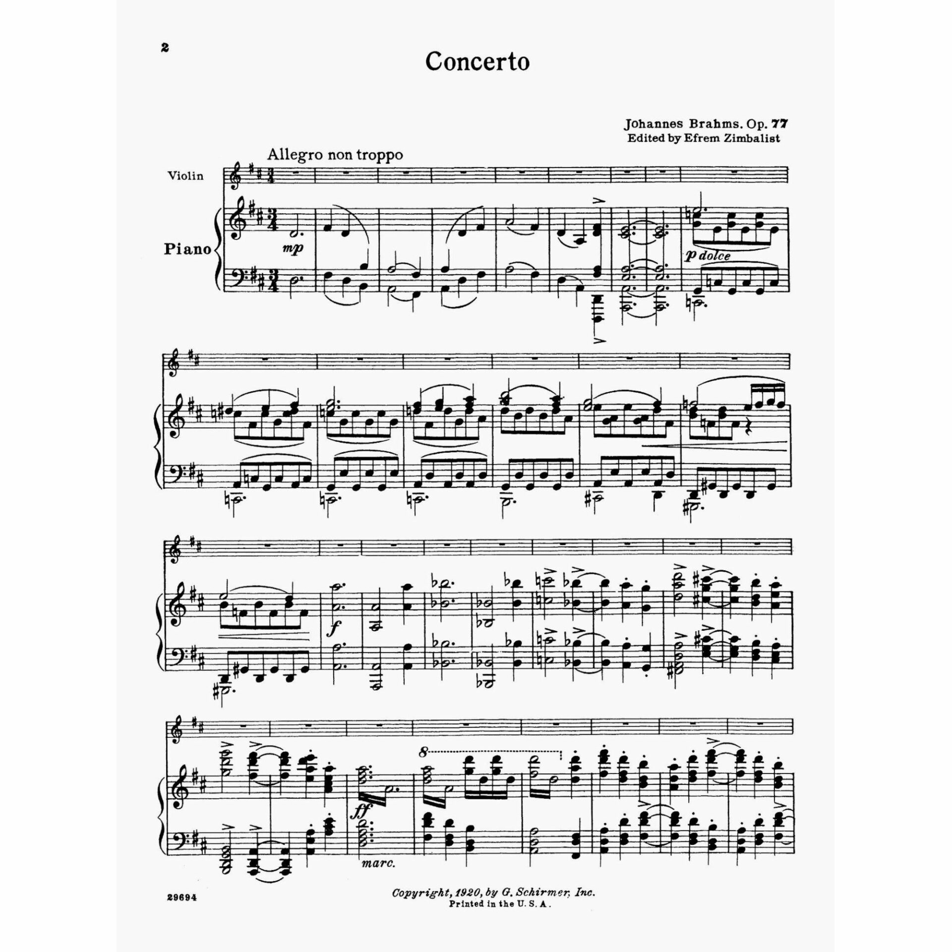 Title: Concerto in D Major, Op. 77