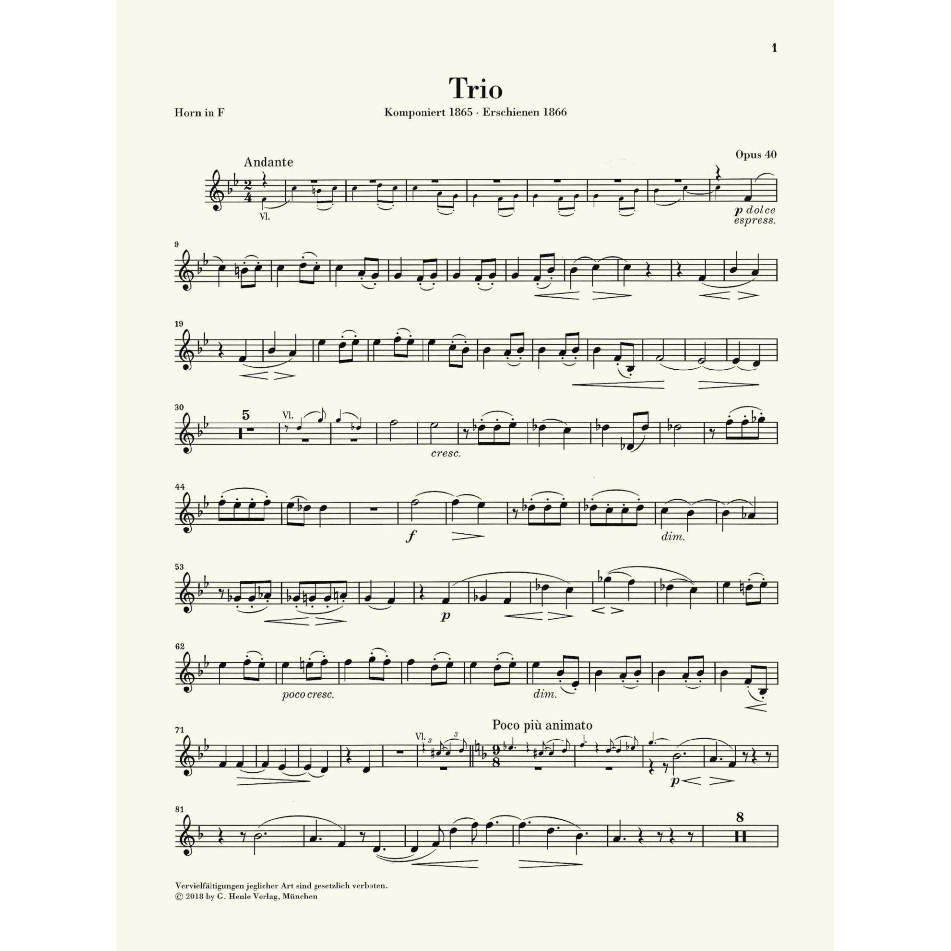 Instrumentation: Horn in F or E-flat (or viola or cello), violin, and piano