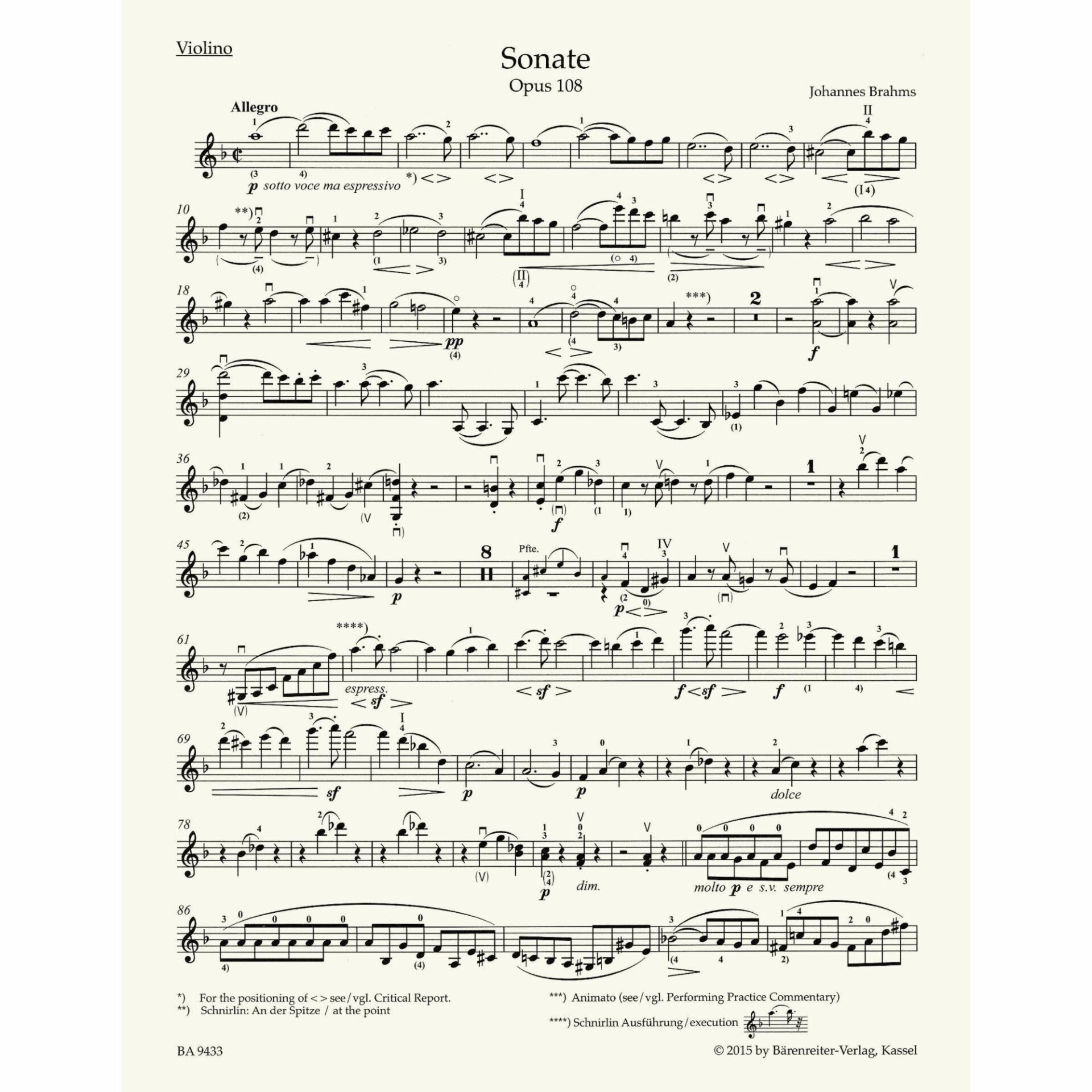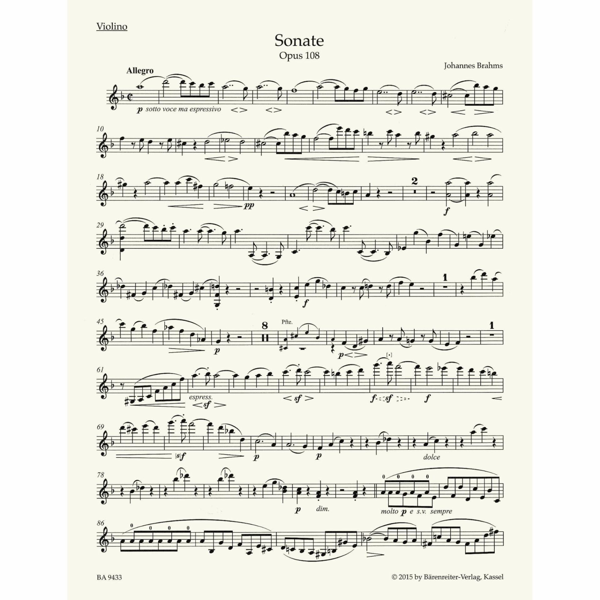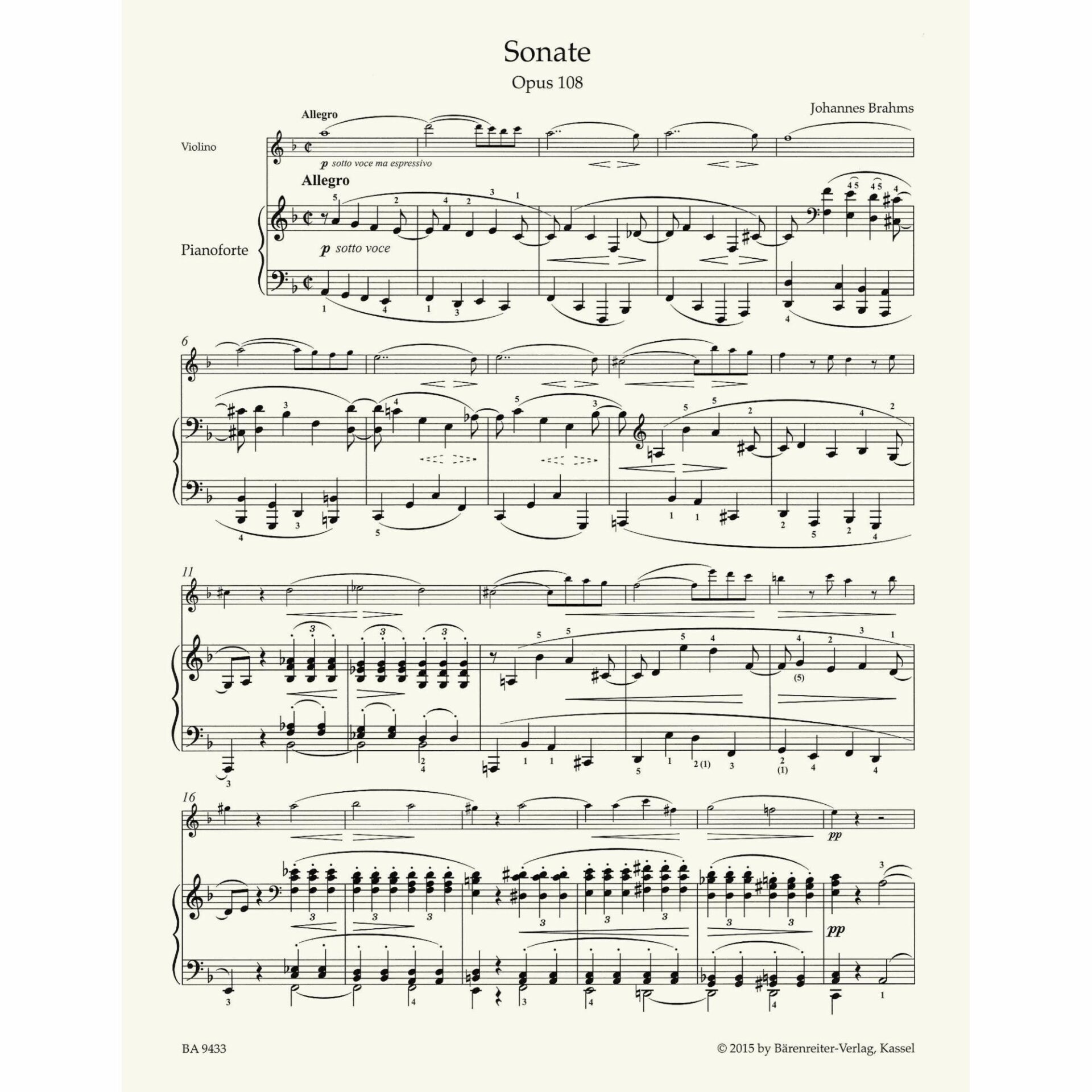 Brahms — Sonata in D Minor, Op. 108 for Violin and Piano
