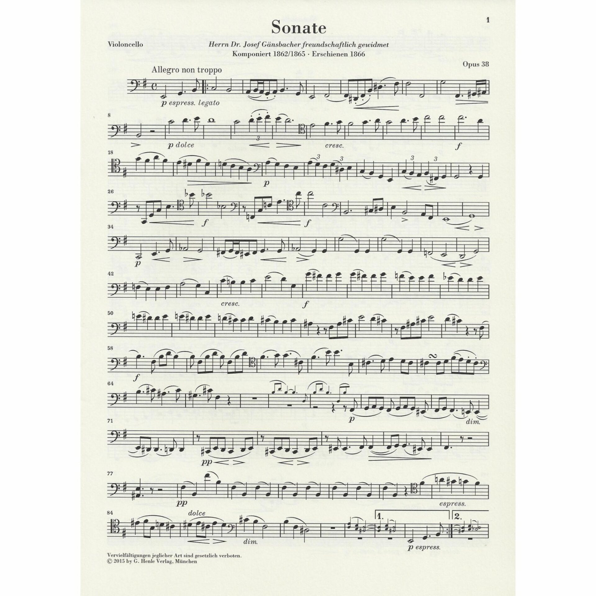 Brahms — Sonata in E Minor, Op. 38 for Cello and Piano