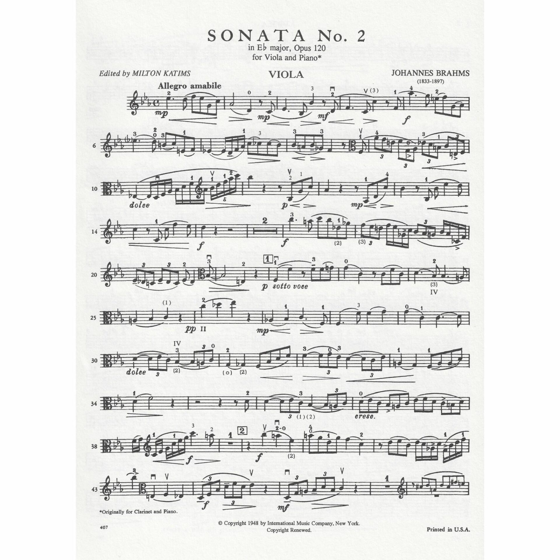 Title: Sonata No. 2 in E-flat Major, Op. 120