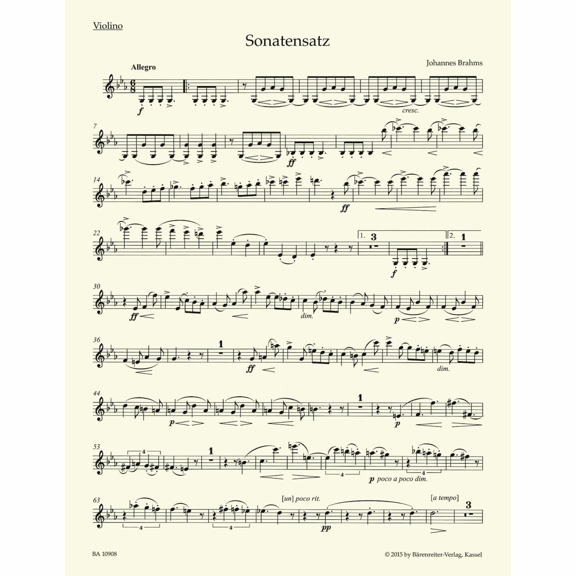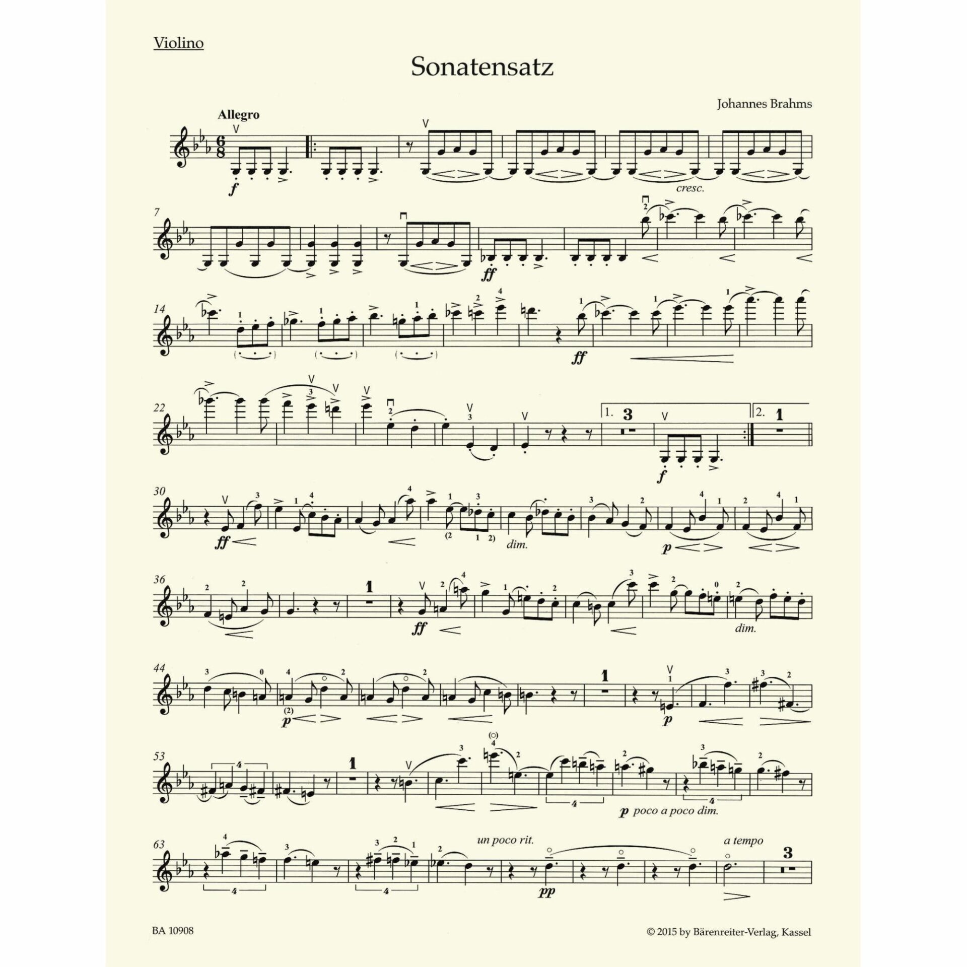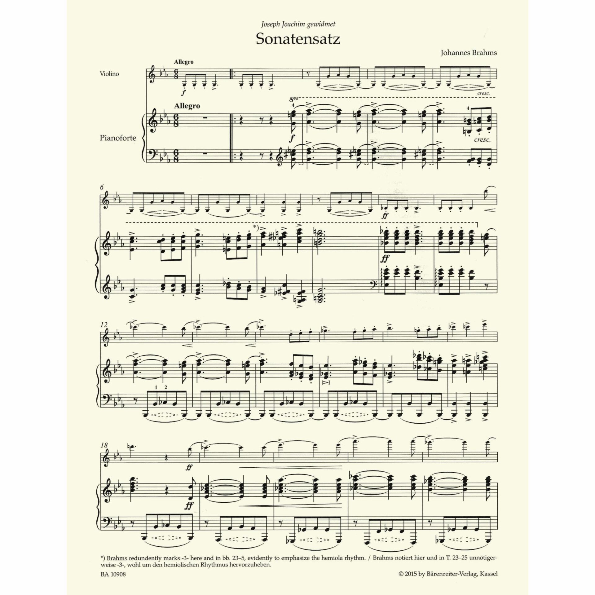 Brahms — Sonatensatz in C Minor, WoO 2 for Violin and Piano