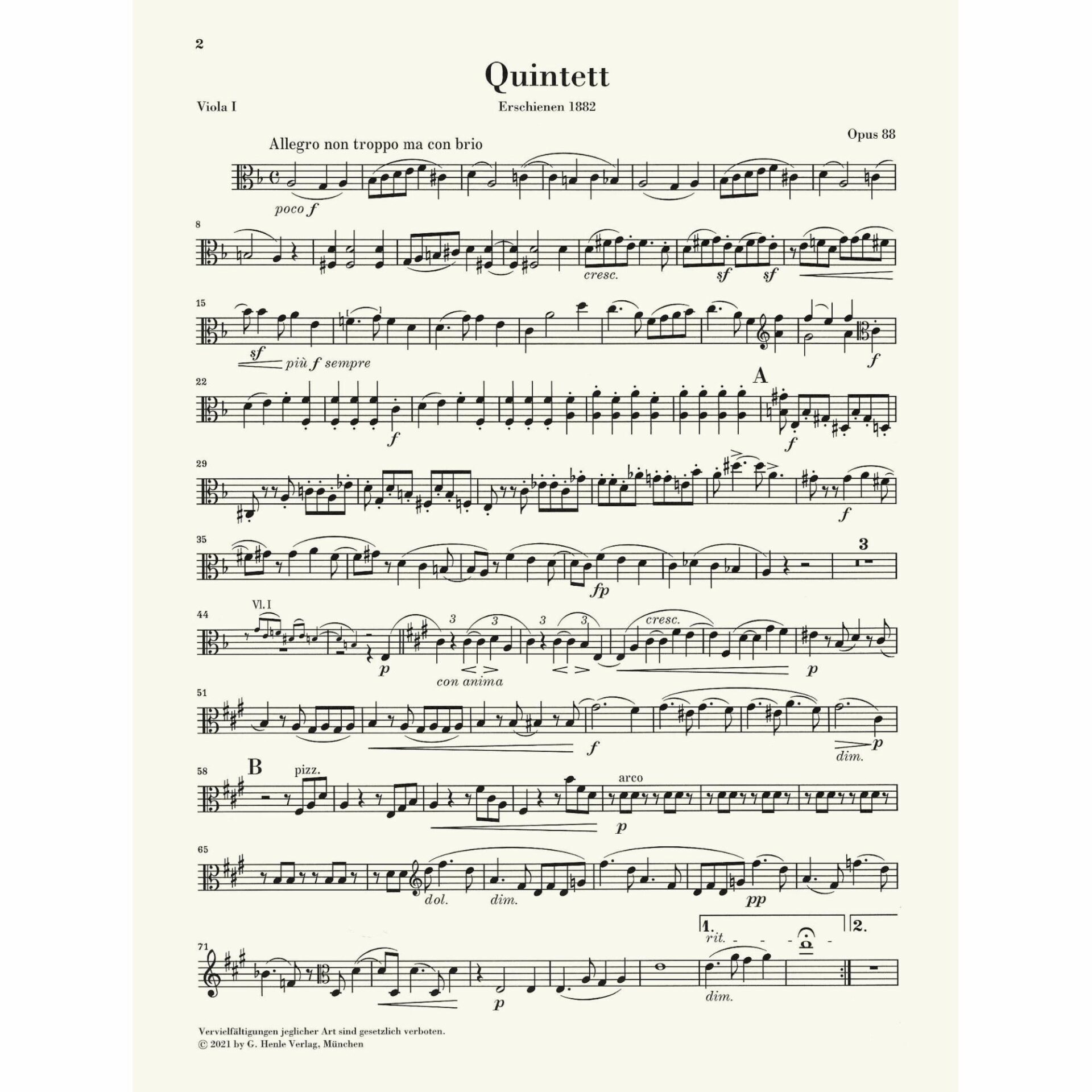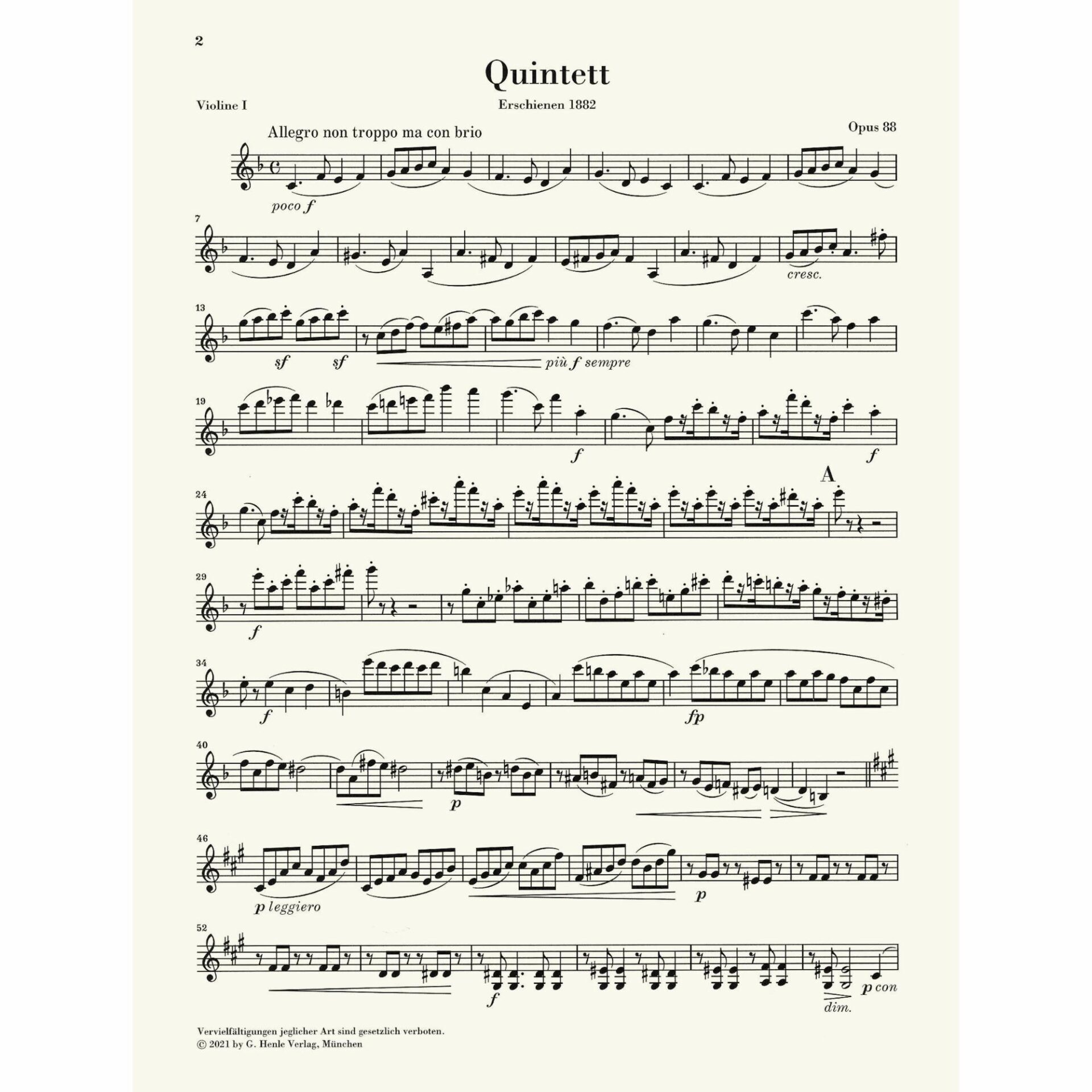 Title: String Quintet No. 1 in F Major, Op. 88