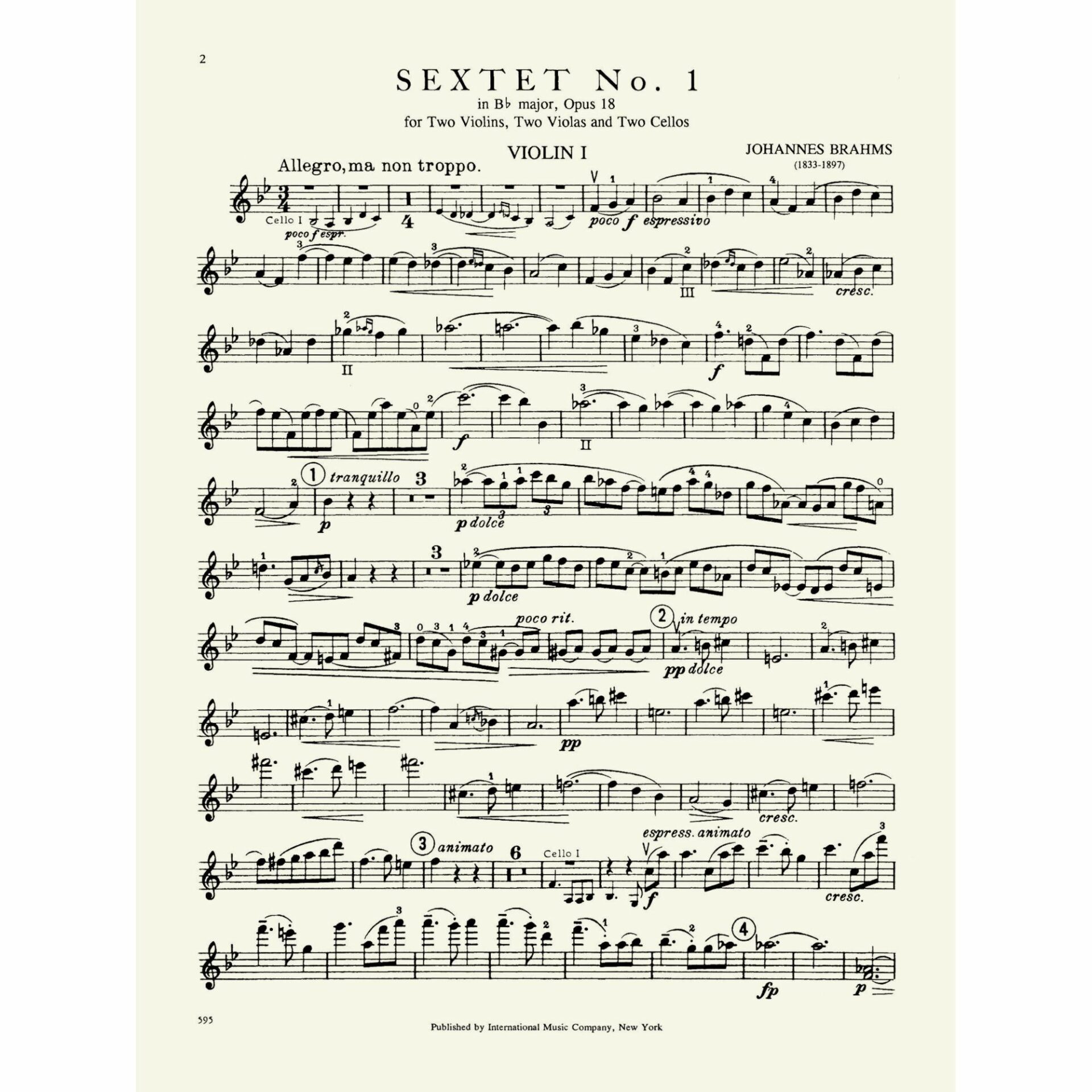 Brahms — String Sextet No. 1 in B-flat Major, Op. 18