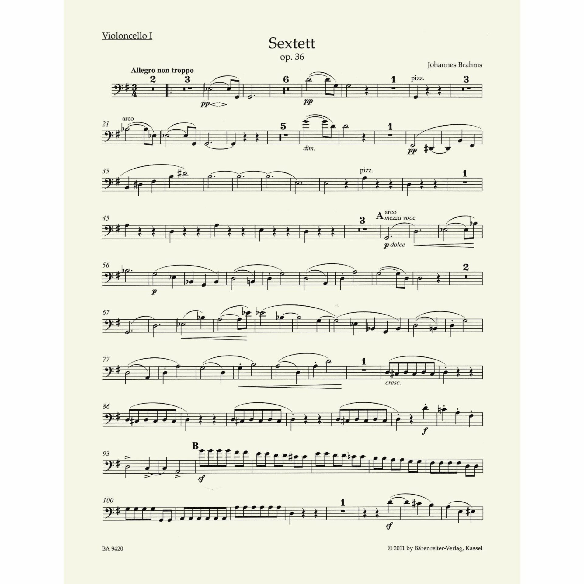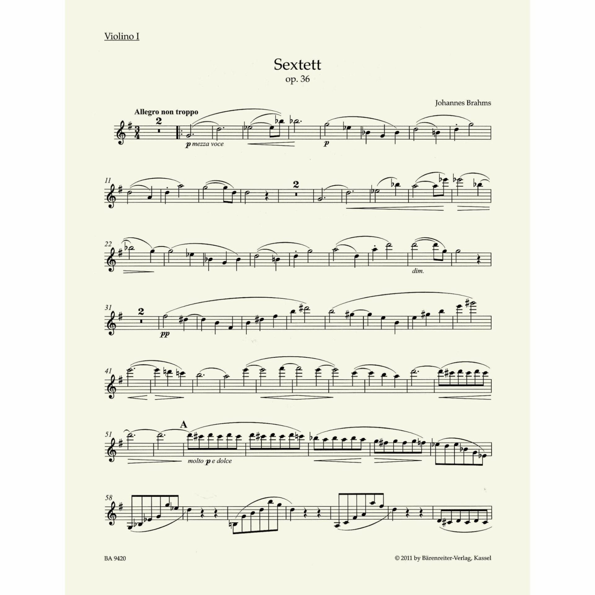 Title: Sextet No. 2 in G Major, Op. 36