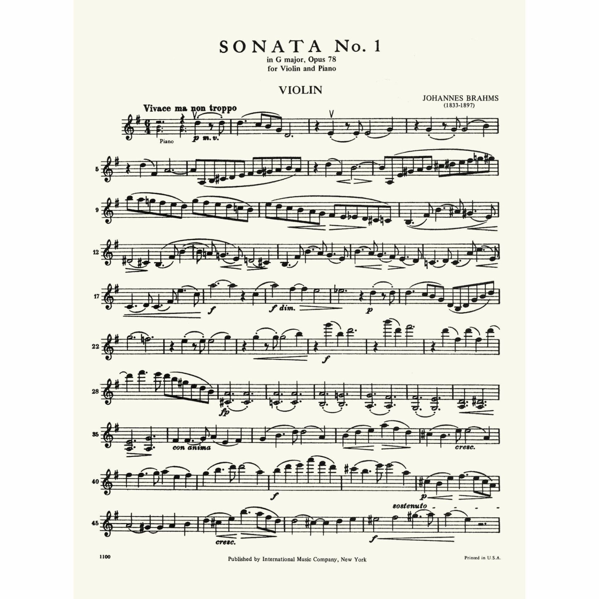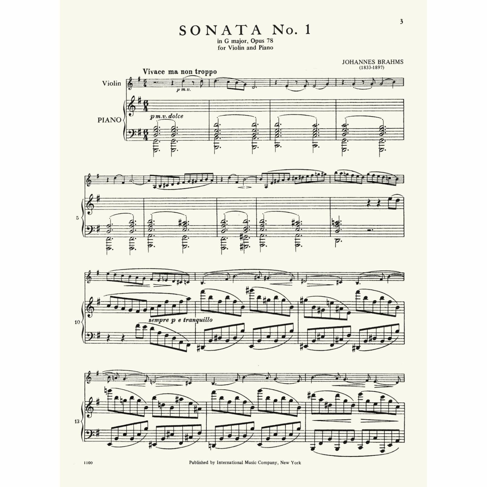 • Violin Sonata in G Major, Op. 78