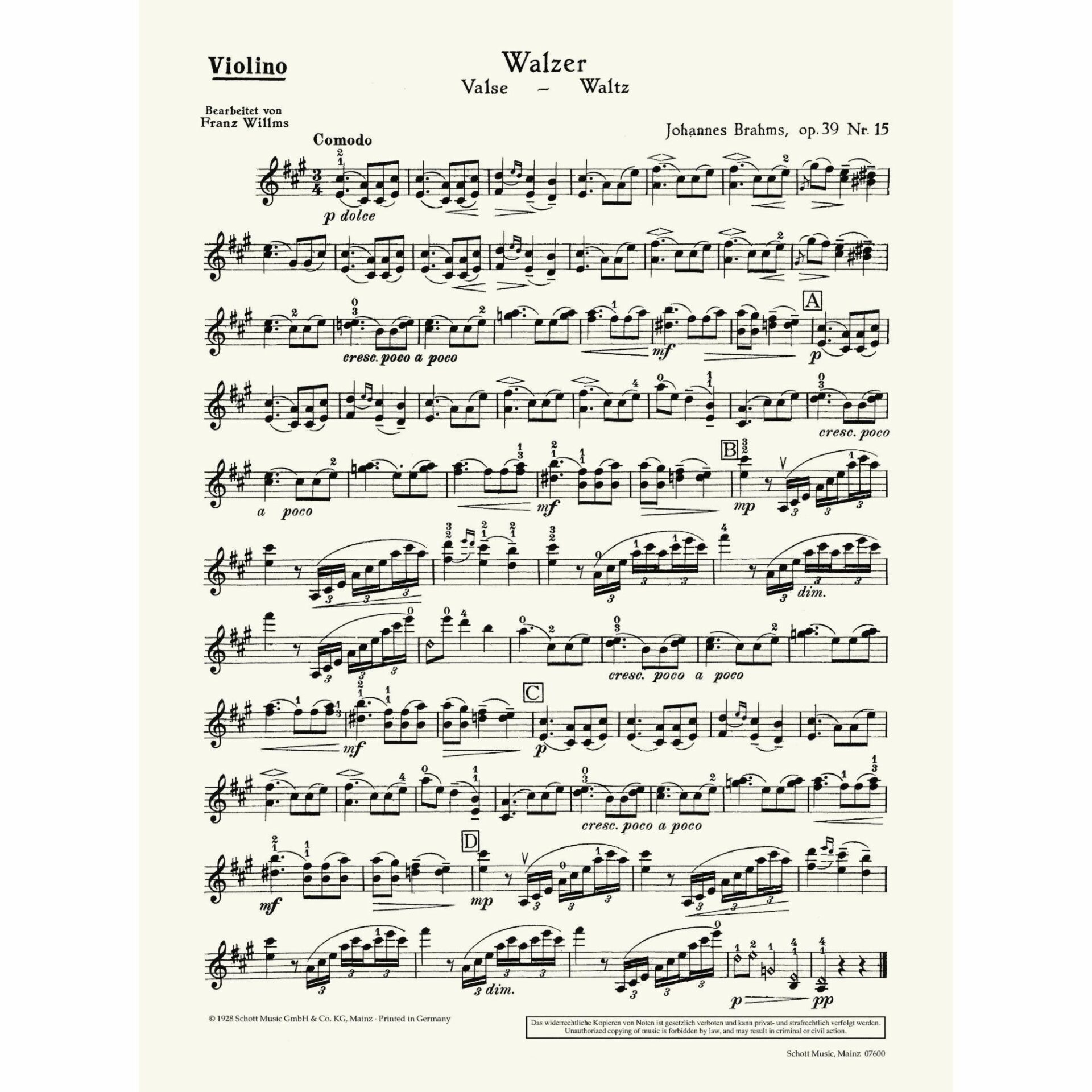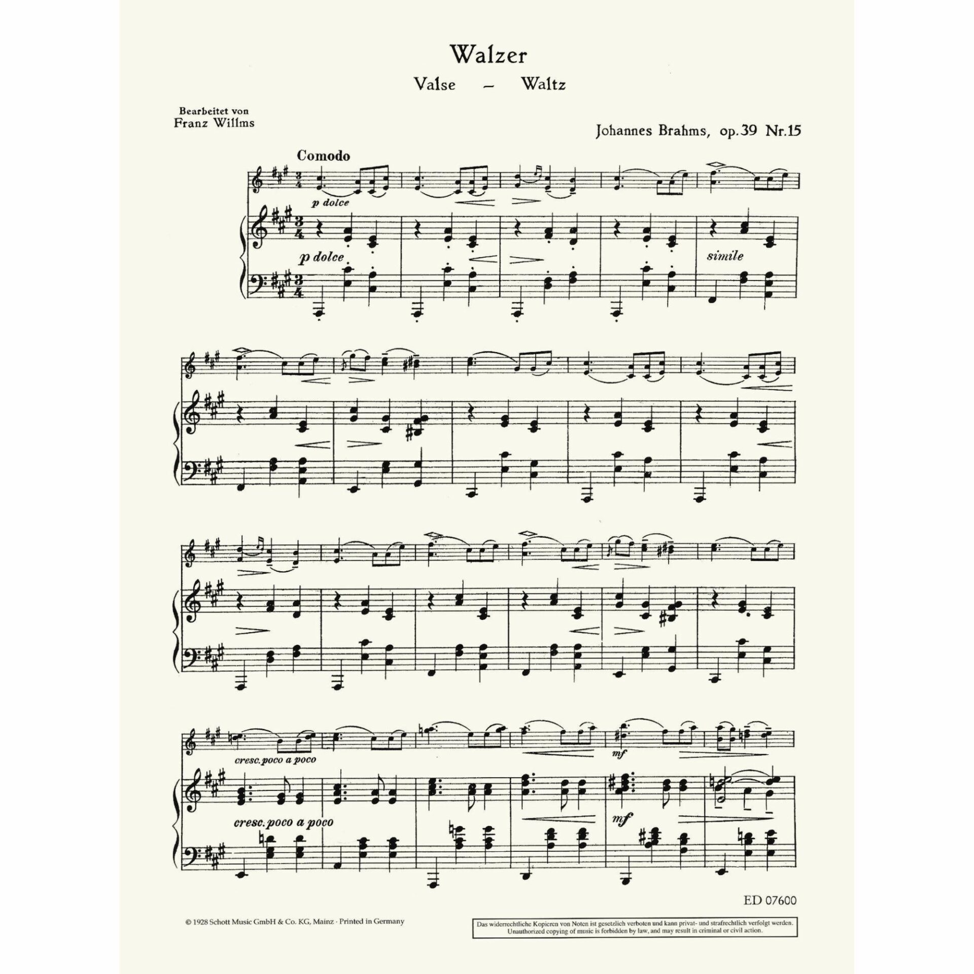 Title: Waltz in A Major, Op. 39, No. 15