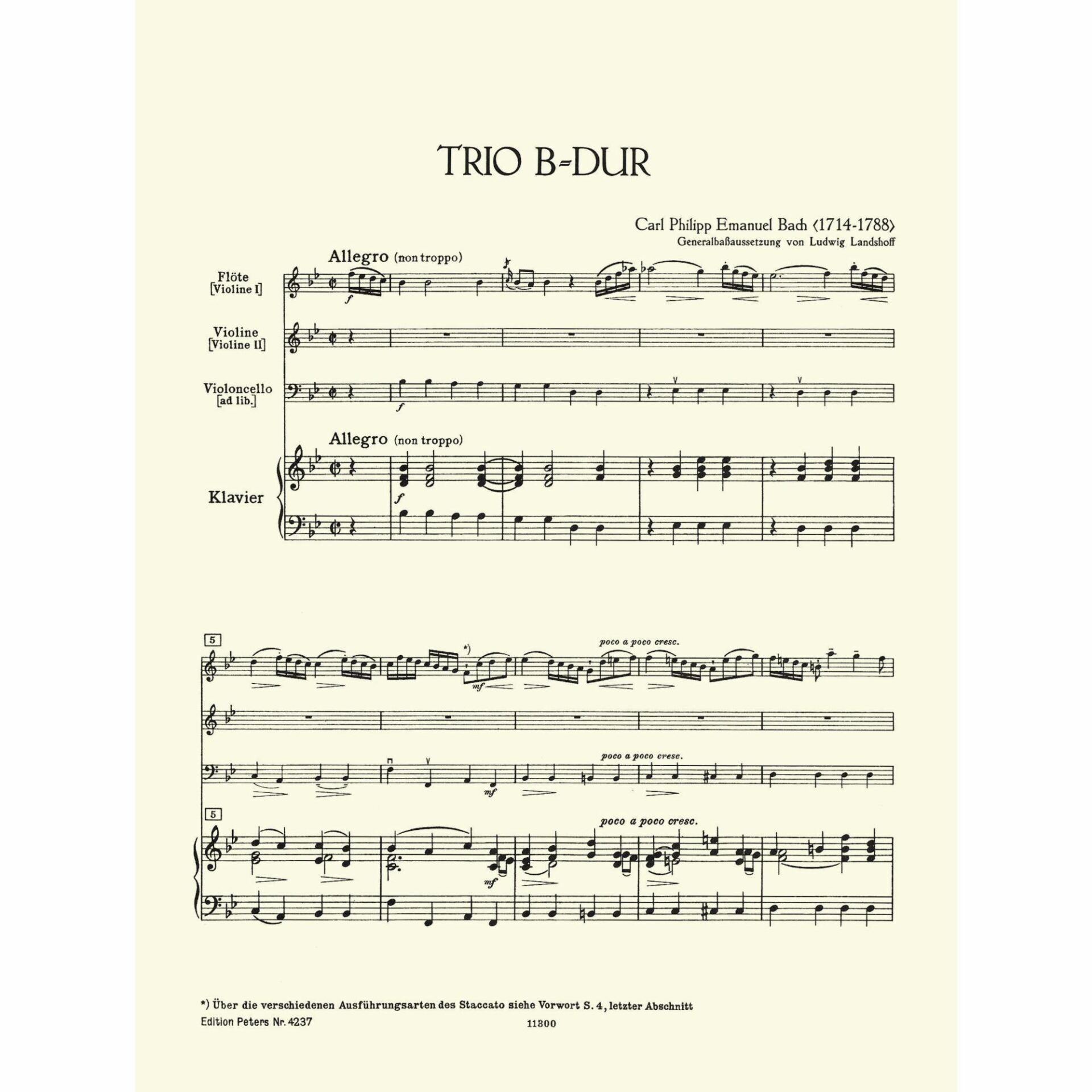 C.P.E. Bach — Trio in B-Flat Major for Two Violins and Basso Continuo