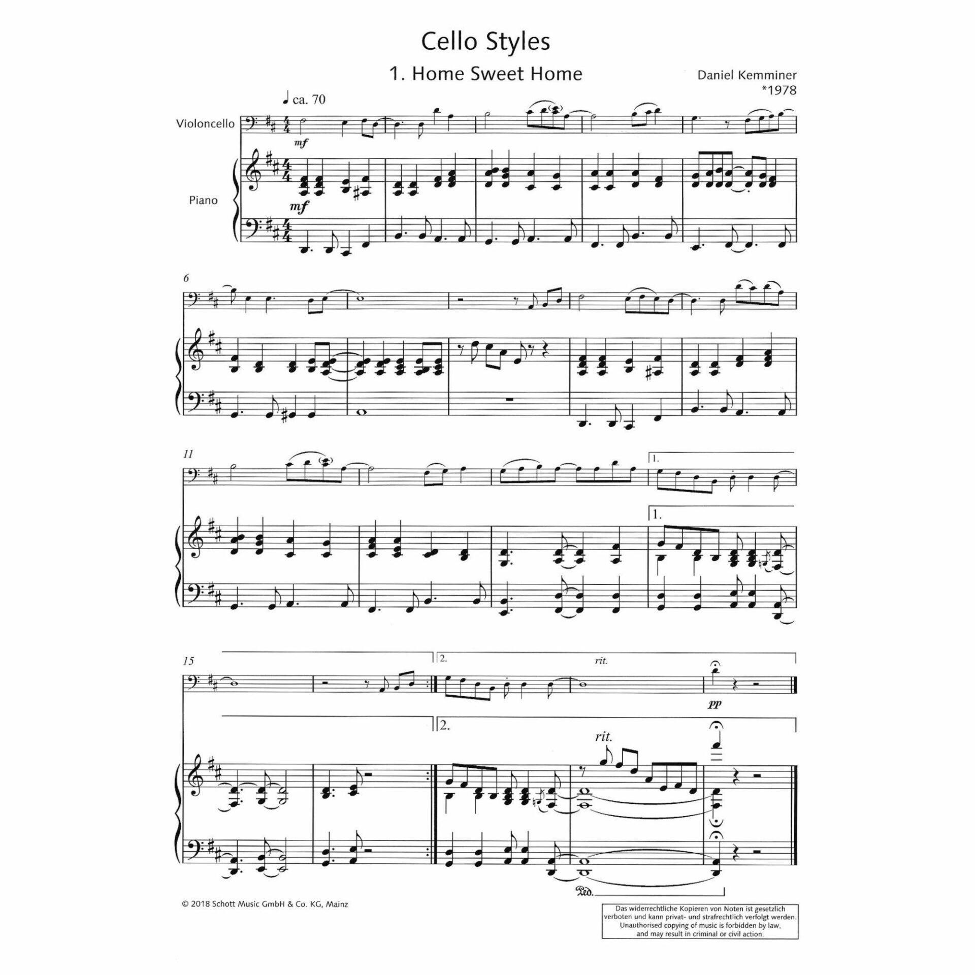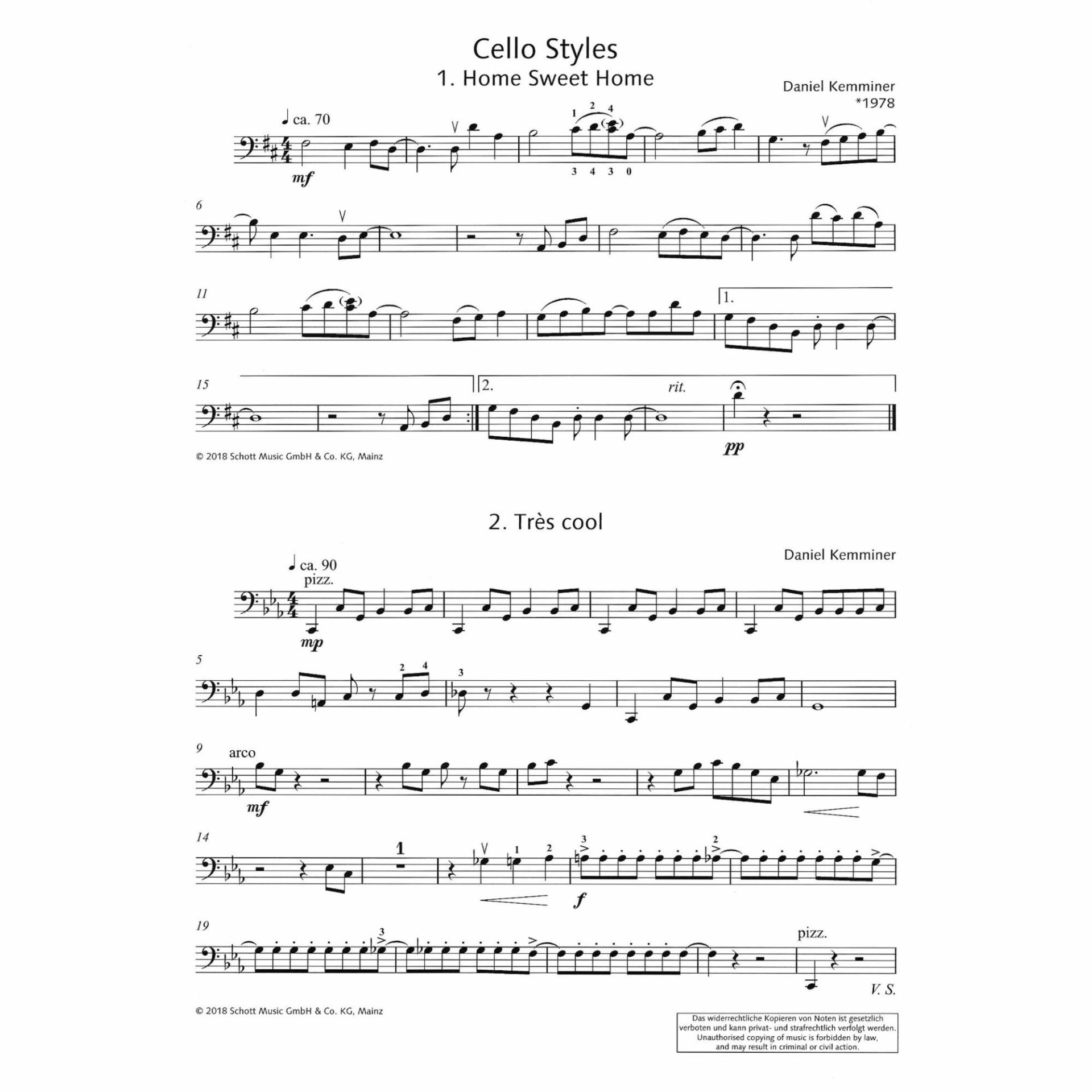 Cello Styles: 14 Easy Pieces for Cello and Piano