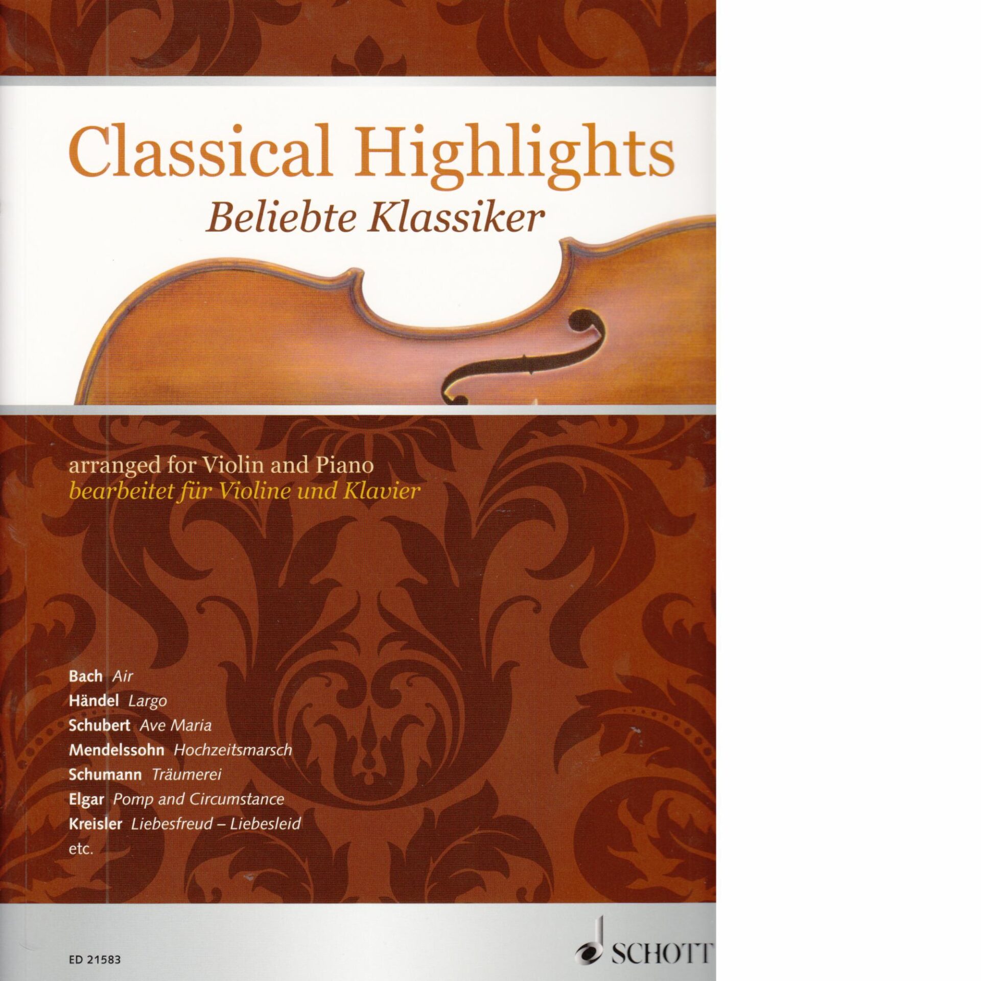 Classical Highlights for Violin and Piano. 21 arrangements of popular classical works for violin and piano. Intermediate level. 40 pages. Published by Edition Schott.