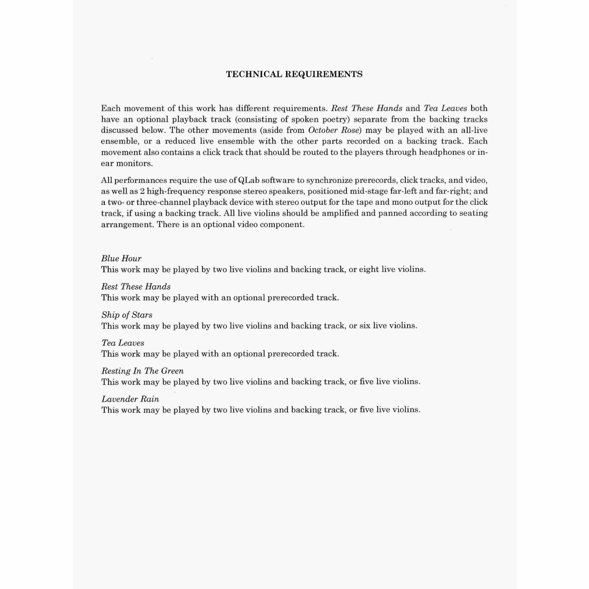 Instrumentation: 2 Violins and tape/video* (or 5-8 violin accompaniment)