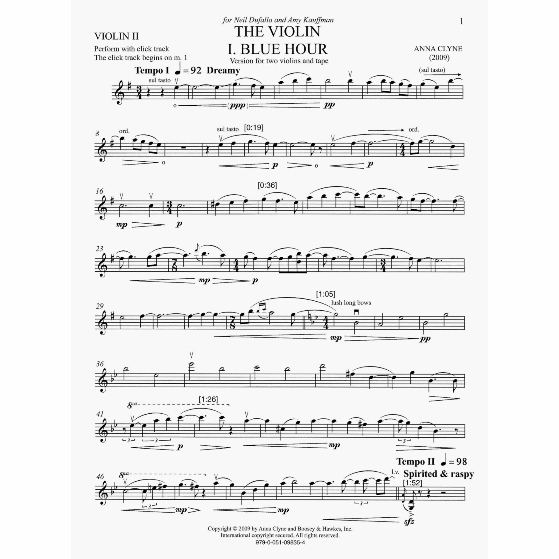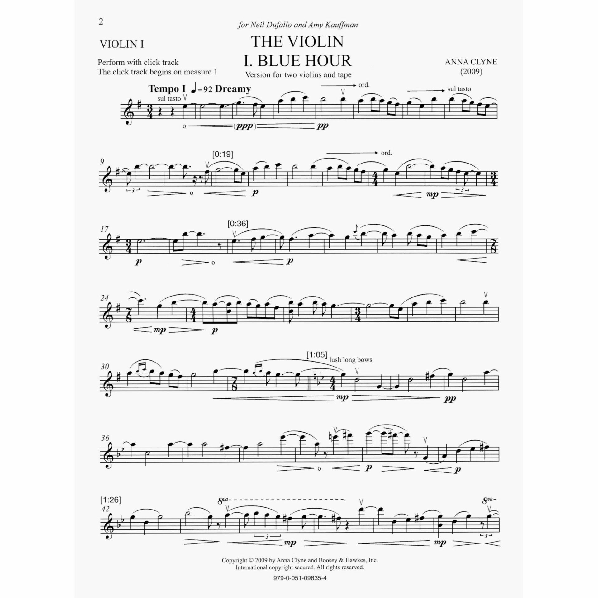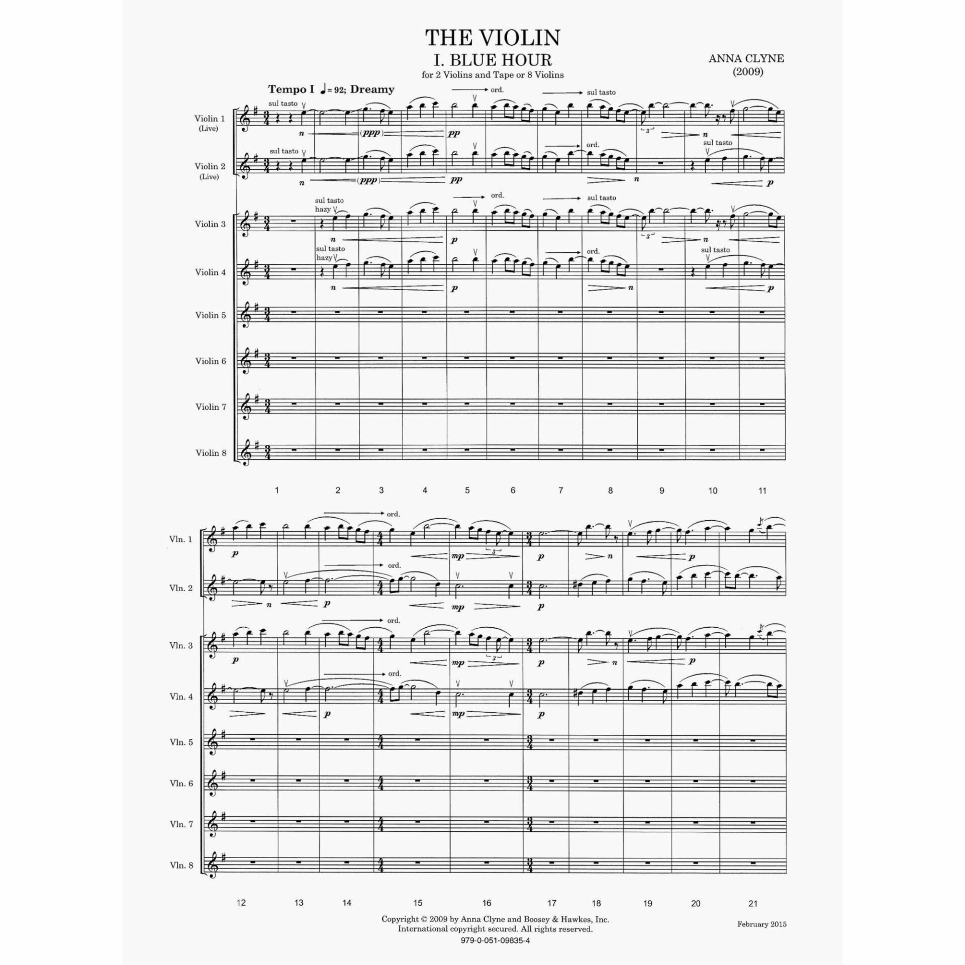 Clyne — The Violin for Two Solo Violins and Tape (or Violin Ensemble)