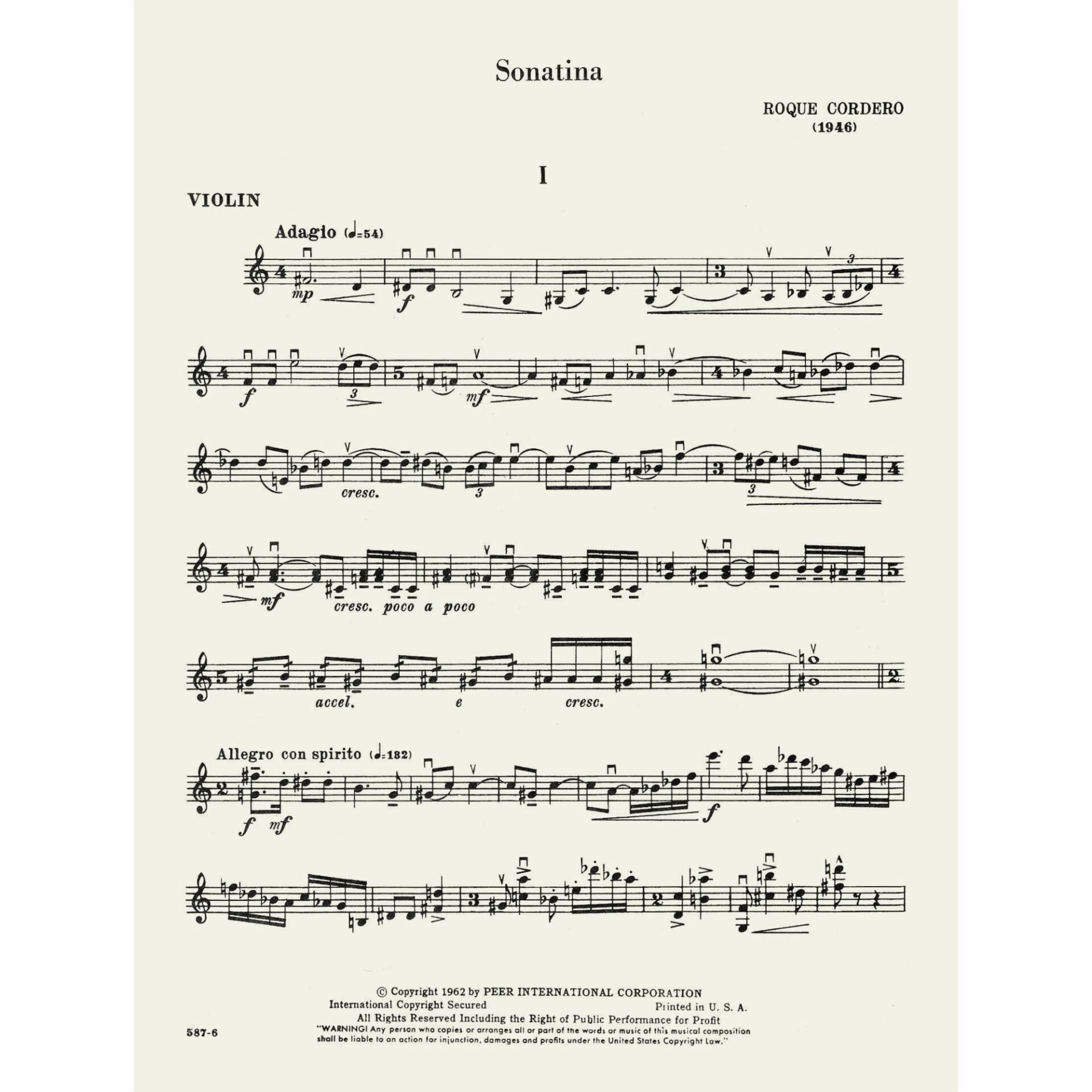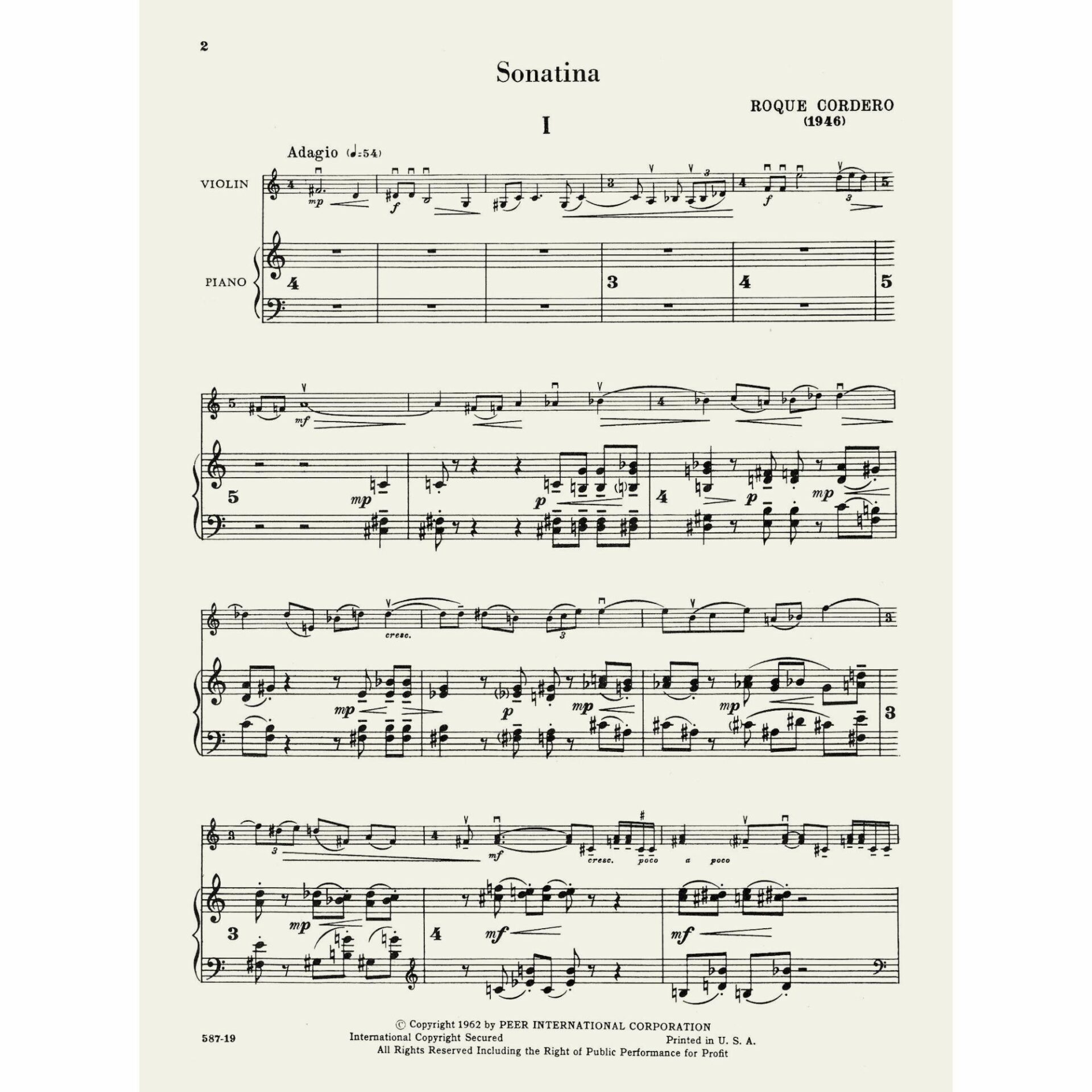 Cordero — Sonatina for Violin and Piano