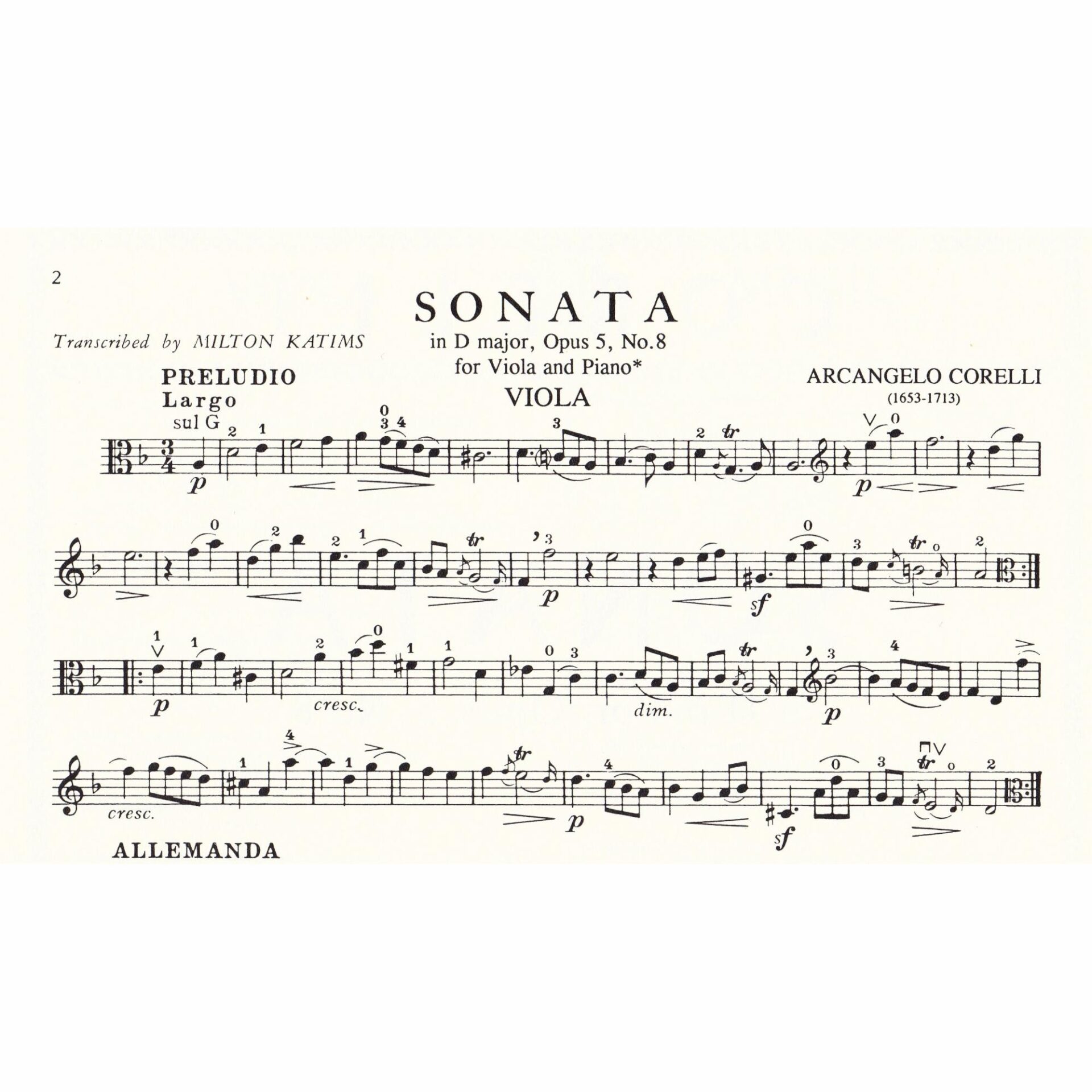 Corelli — Sonata in D Minor, Op. 5, No. 8 for Viola and Piano