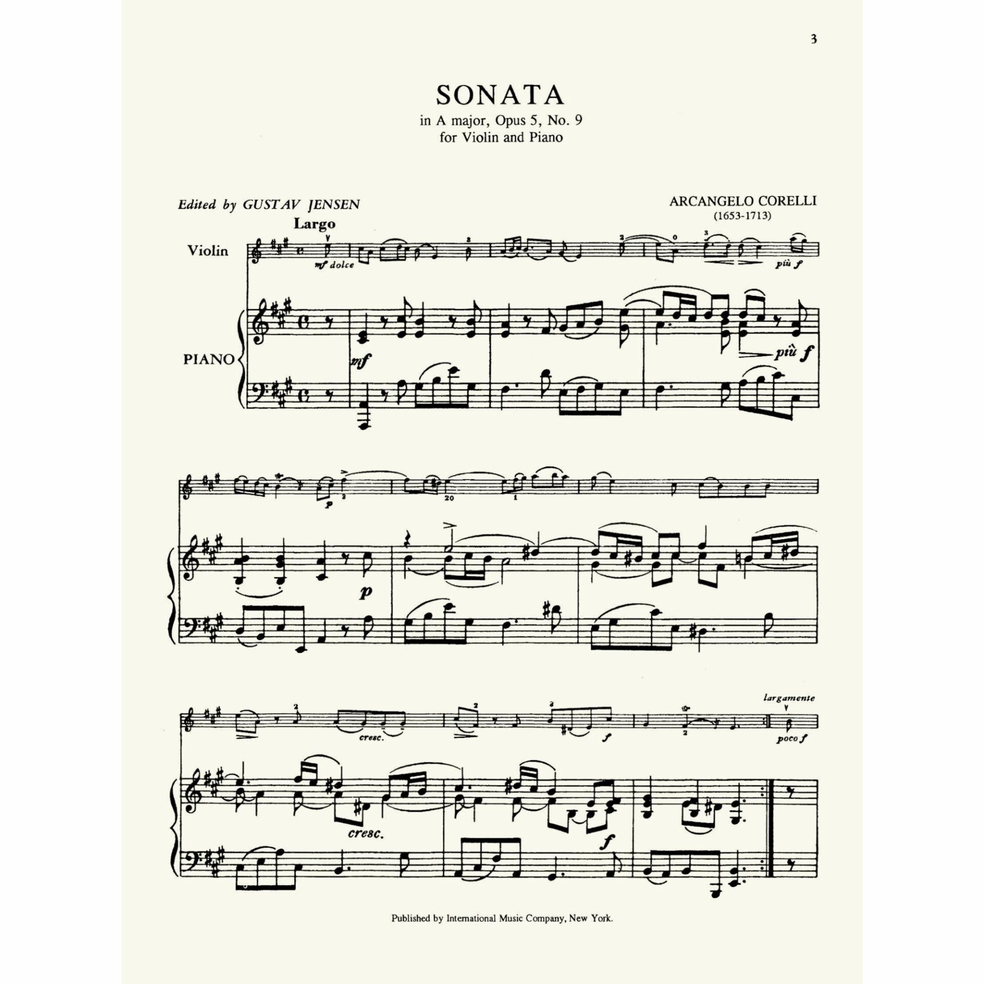 Corelli — Three Sonatas, Op. 5 for Violin and Piano