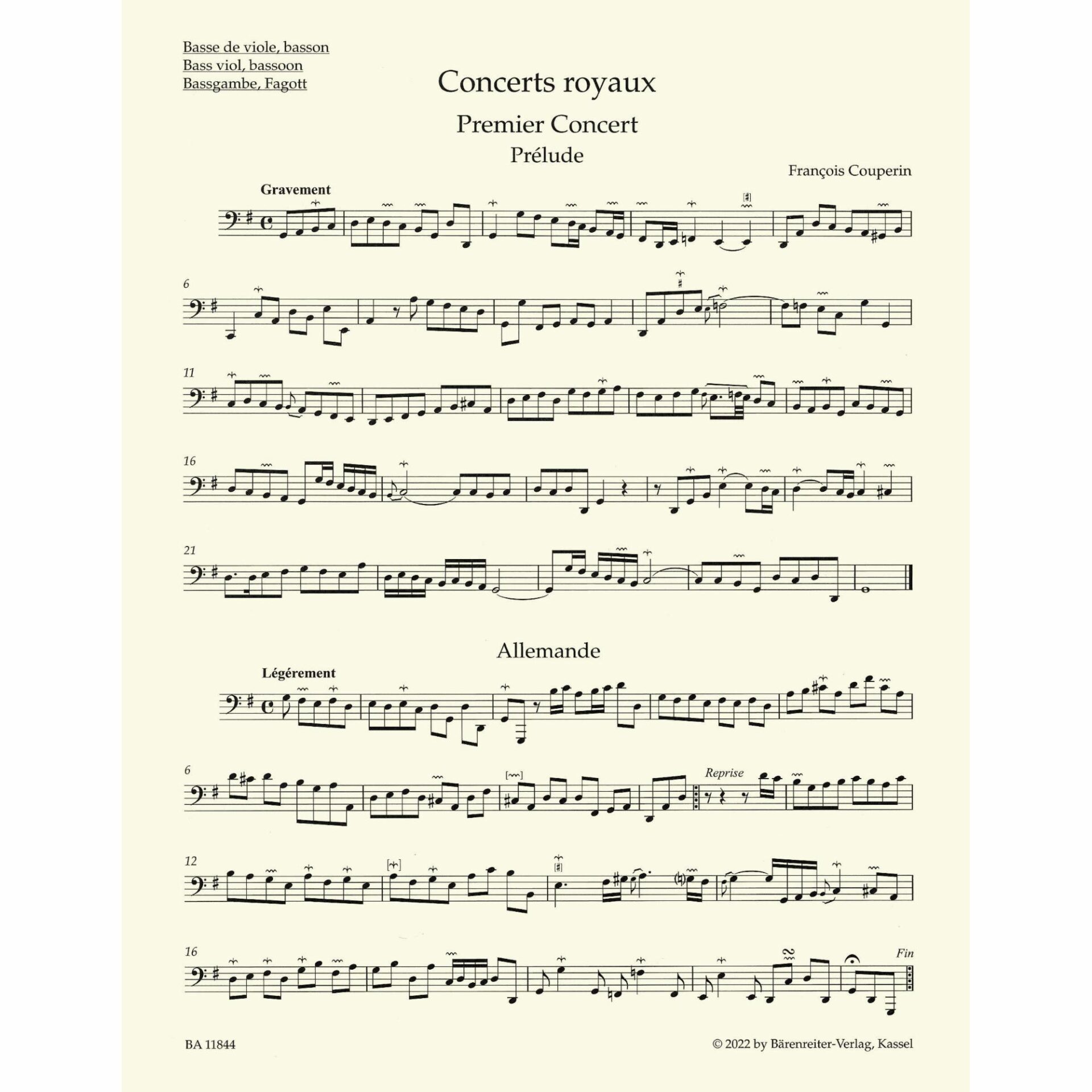 Instrumentation: 1 or 2 treble instruments, bass viol, bassoon, and harpsichord (unrealized bass)*